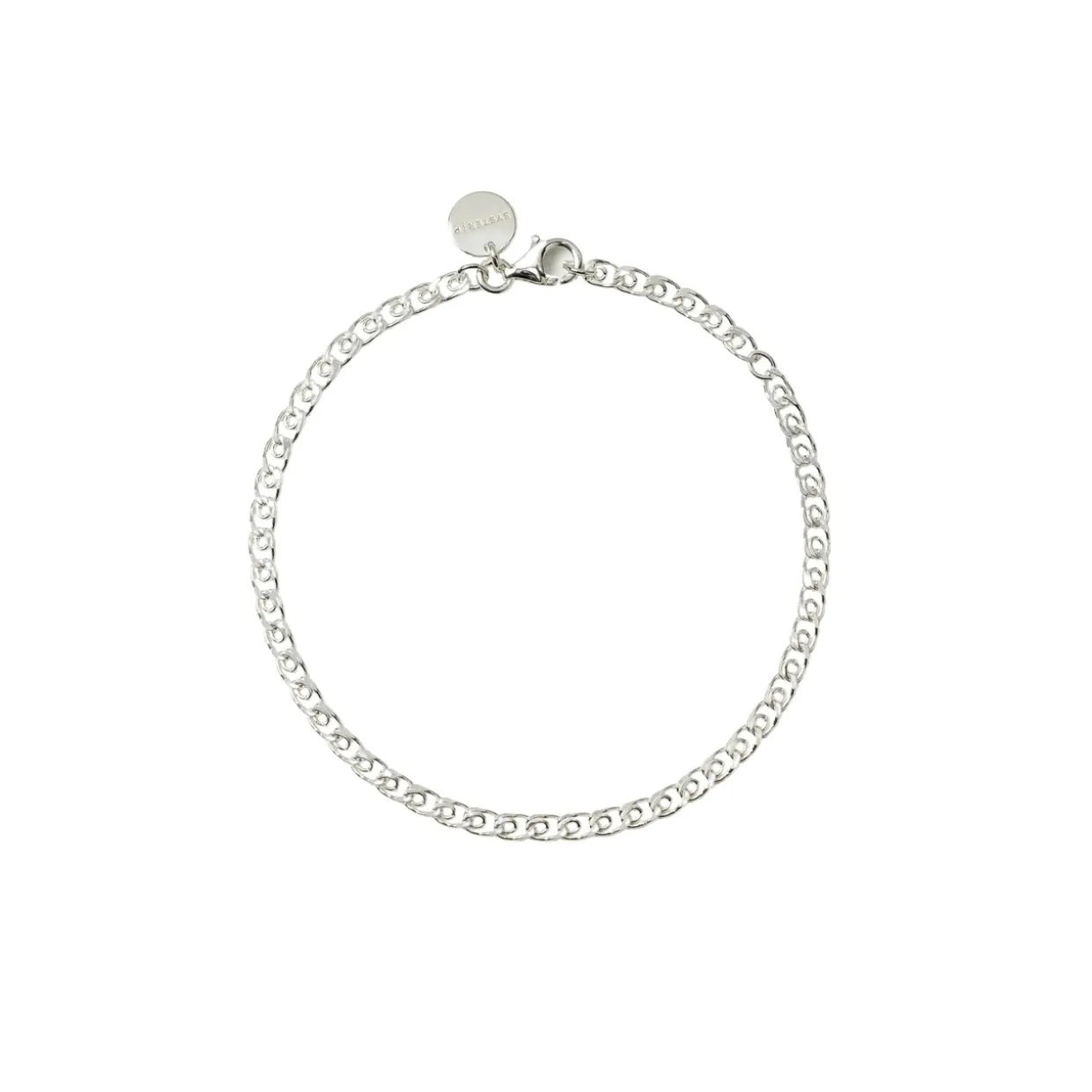 Klassiskt möter samtid. Detta tidlösa armband, med sin unika mönstrade kedja, ger din look en distinkt känsla. Det är gjort av 100% återvunnet sterlingsilver samt pläterat med 18 guld och är ett perfekt val för stacking eller att bära ensamt som ett solitärsmycke. Från Syster P.