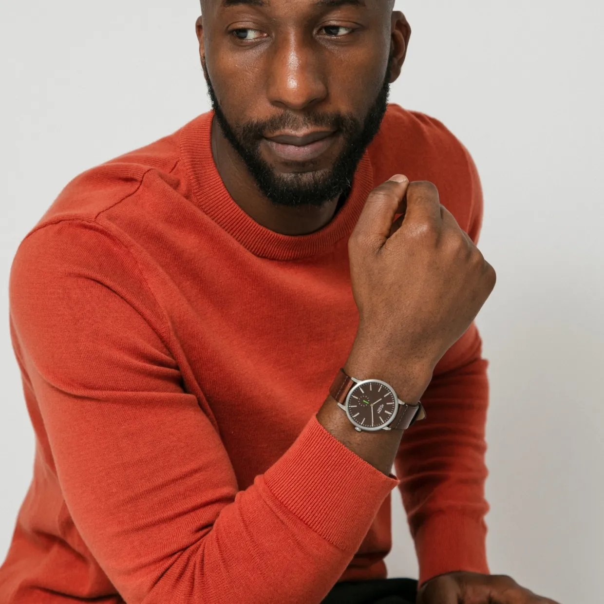 Stilren och klassisk klocka som får ett modernt utseende iom den tunna enkla boetten där alla deltaljer är bortskalade förutom den gröna sekundvisaren. Boetten är tillverkad i matt rostfritt stål. Armbandet i vegetabiliskt garvat läder som bara kommer att bli vackrare med åren. Urverk Miyota Citizen.