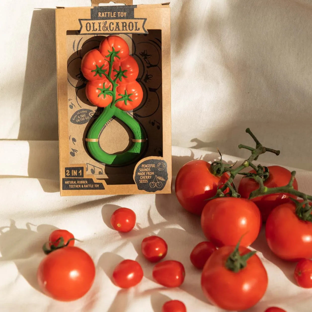 Ytan är tillverkad av 100 % naturligt gummi och inuti finns återvunna körsbärskärnor som förvandlar denna bitring till en skallra. Två-i-ett! Denna skallra är framtagen i nära samarbete med certifierade öron-näsa-halsläkare, vilket har hjälpt oss att skapa en perfekt ljudnivå som lugnar bebisar istället för att överstimulera dem. Den är fylld med fantastiska texturer och detaljer som stimulerar de små sinnena när de tuggar på den!
