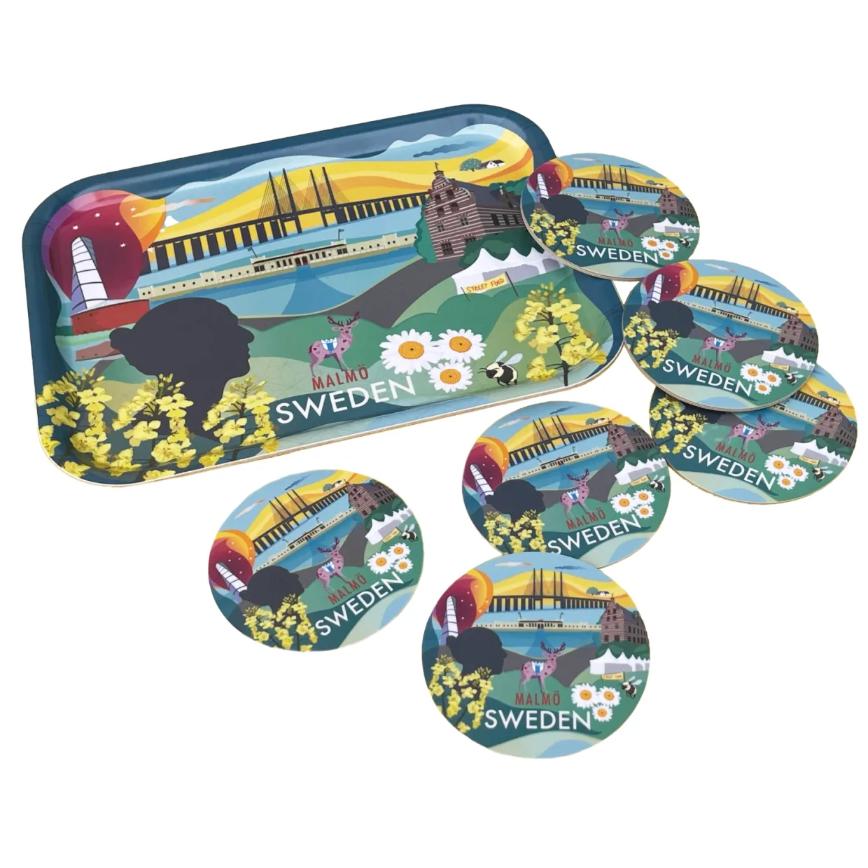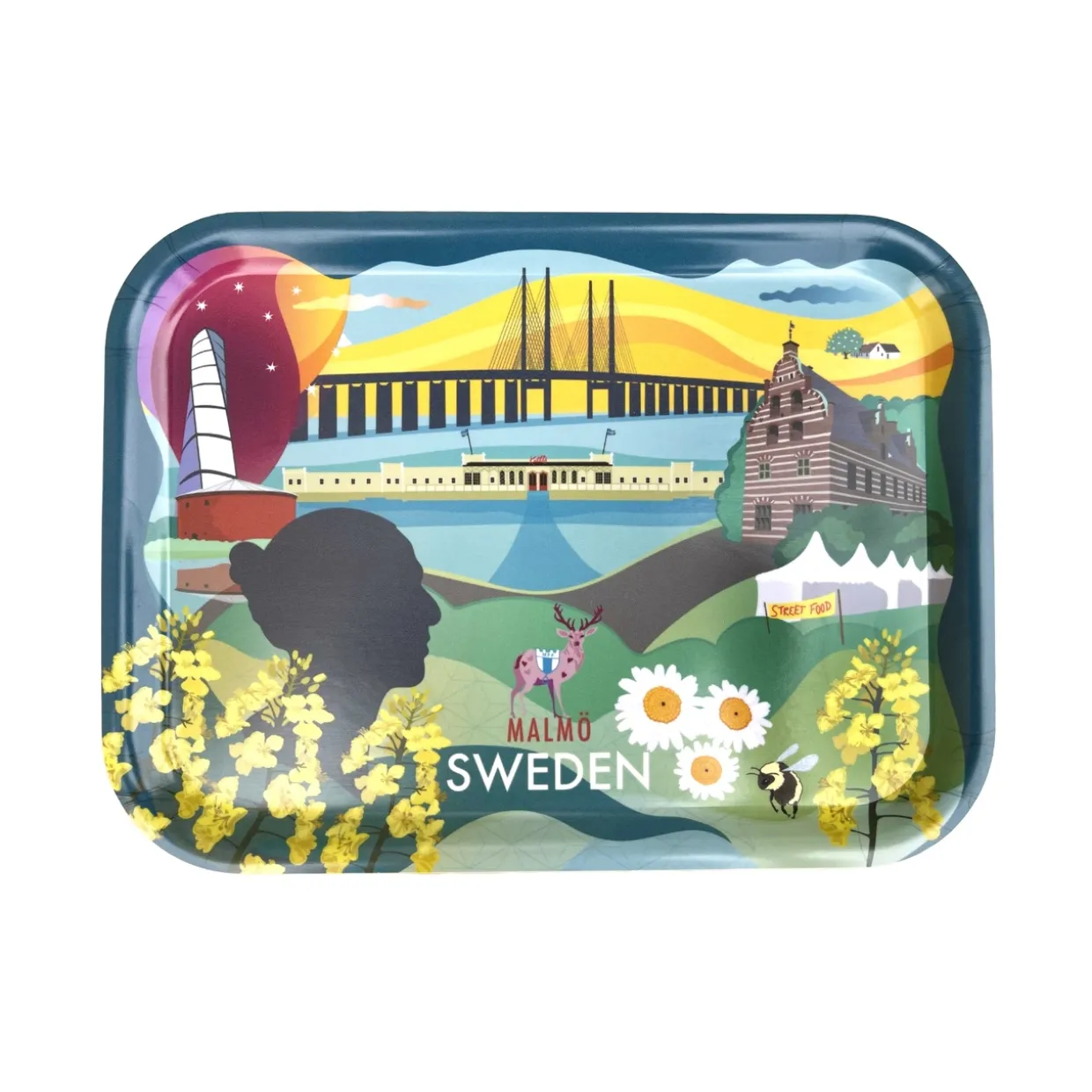 En praktisk och vacker bricka med ett färgstarkt Malmömotiv, illustrerat av Lottis Karlsson. Med sin lekfulla stil lyfter Lottis fram stadens unika karaktär genom noggrant utvalda symboler och detaljer som speglar känslan av Malmö.