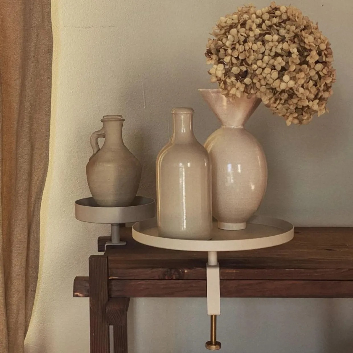 Clamp Tray är en bricka och hylla i ett. Brickan fästs med en mässingtving och blir ett extra utrymme och en inredningsdetalj till hemmet. Fäst Clamp Tray på fönsterbrädan, i bokhyllan, eller köksbänken. Tillverkad av pulverlackad metall och mässing.