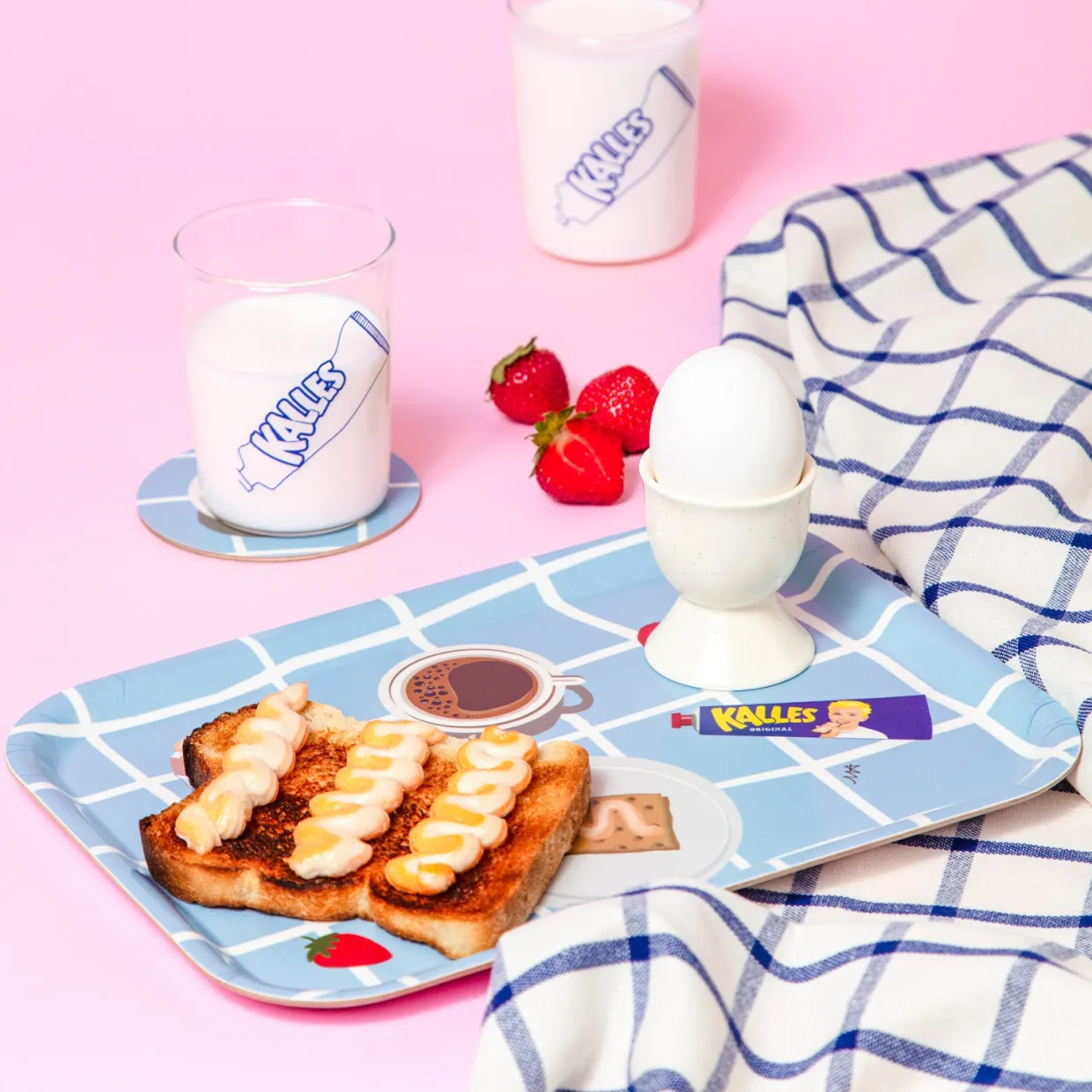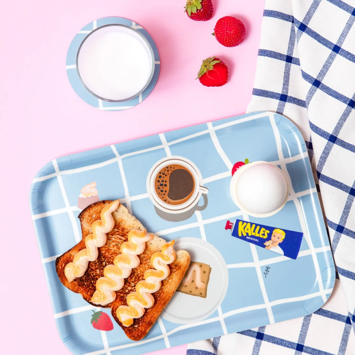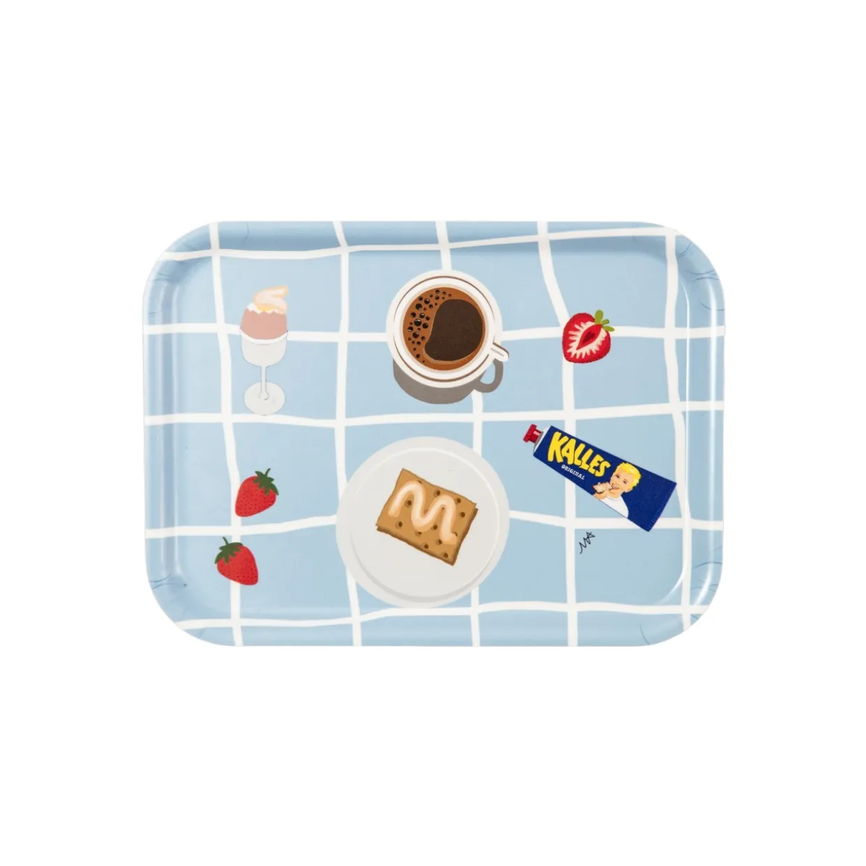 Lekfull och praktisk frukostbricka som är skapad i samband med Kalles 70-årsjubileum samt hyllar den omtyckta kaviarens självklara plats på frukostbordet genom tiderna. Motivet representerar Kalles egna födelsedagsfrukost och bjuder in till en hemtrevlig stämning!