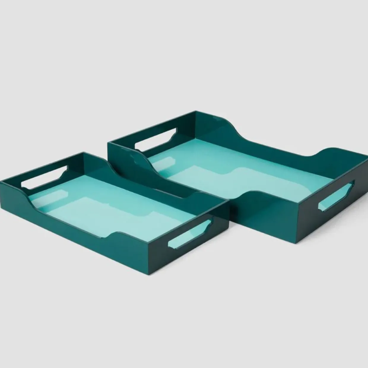 Förhöj din heminredning med denna fantastiska, lackerade bricka tillverkad av målad och lackad MDF från Printworks! Med måtten 42x27x7 cm har den gott om plats för att servera, organisera eller visa upp dina favoritföremål samtidigt som den ger en touch av elegans oavsett vilket utrymme du väljer att placera den i. Välj mellan två eleganta färgkombinationer: Vinröd/Rosa eller Turkos/Grön.