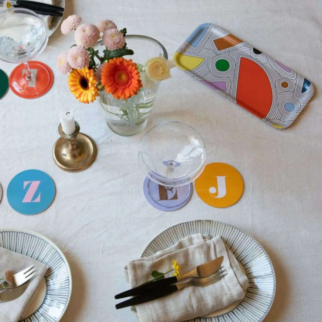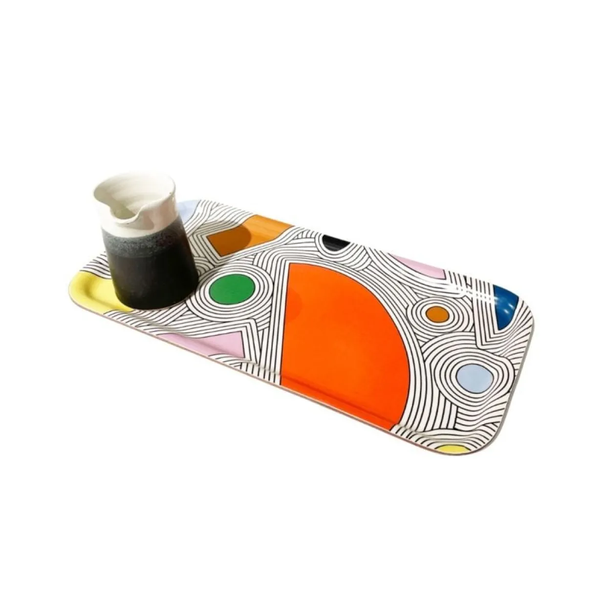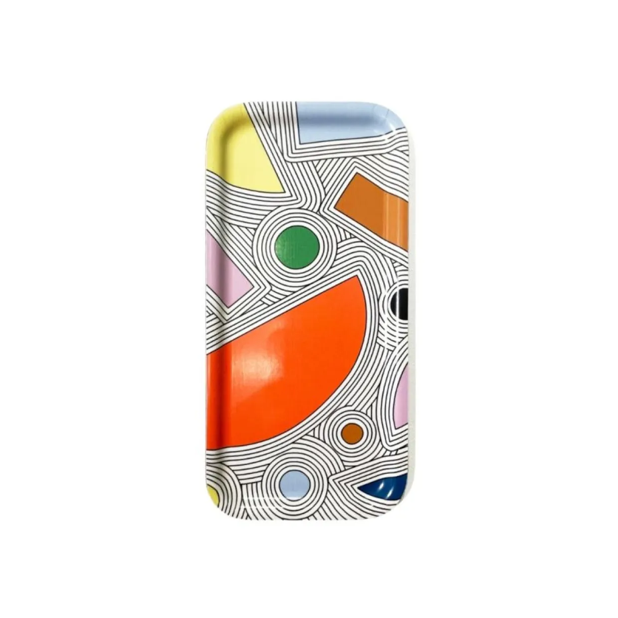 En smal bricka med mönster formgivet av Julia Nielsen, perfekt för frukosten eller fikat. Julia Nielsen har varit en produktiv designer sedan 2003 när hon började sälja örhängen gjorda av överblivna läderrester på Spitalfields marknad i London. Sedan dess har företaget Hippstory designat inredning, pappersvaror, accessoarer och smycken, som säljs i främst museibutiker runt om i världen. Julia designar även skräddarsydda produkter för museer och andra.