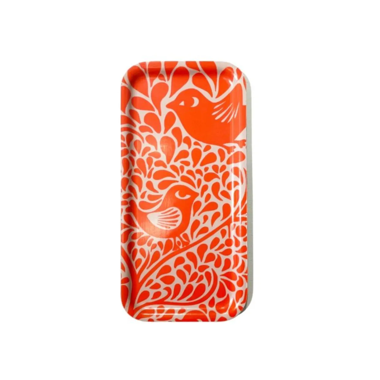 En smal bricka med mönster formgivet av Julia Nielsen, perfekt för frukosten eller fikat. Julia Nielsen har varit en produktiv designer sedan 2003 när hon började sälja örhängen gjorda av överblivna läderrester på Spitalfields marknad i London. Sedan dess har företaget Hippstory designat inredning, pappersvaror, accessoarer och smycken, som säljs i främst museibutiker runt om i världen. Julia designar även skräddarsydda produkter för museer och andra.