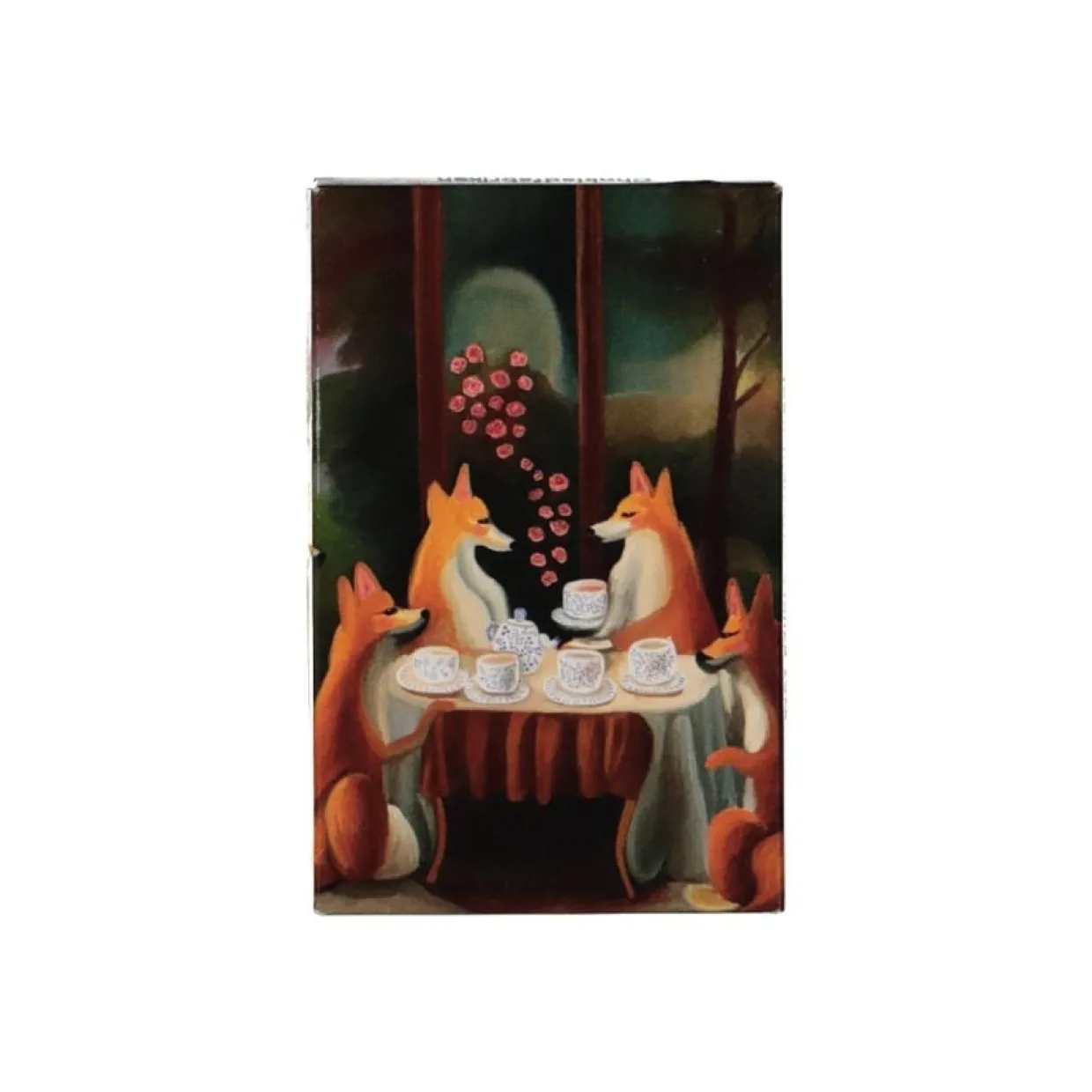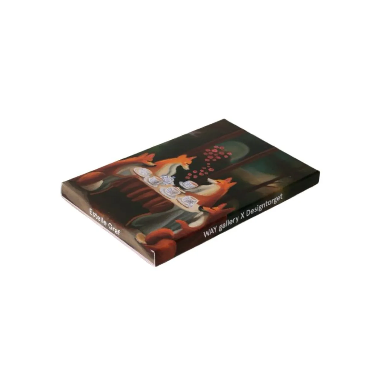 ”Illustrationerna som utgör min del av kollektionen är en fortsättning på min nu ganska stora samling målningar av fabler. Med djurhuvuden på människokroppar gestaltar jag karaktärer som inte sällan befinner sig i olika restaurangermiljöer – något som kändes perfekt för illustrationer tänkta till drinkunderlägg och serveringsbrickor som är några av de föremål jag designat till kollektionen.”