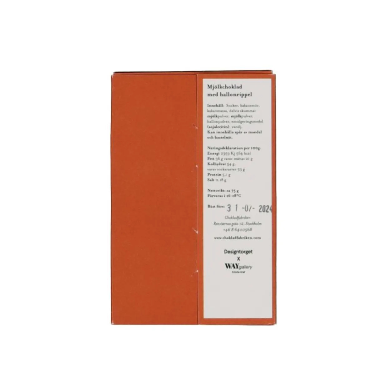 En lagom söt mjölkchoklad med syrlig hallonripple. Tillverkad för hand på Södermalm i Stockholm. Förvaras svalt, 16-18 grader Celsius. Tillverkad av Chokladfabriken.