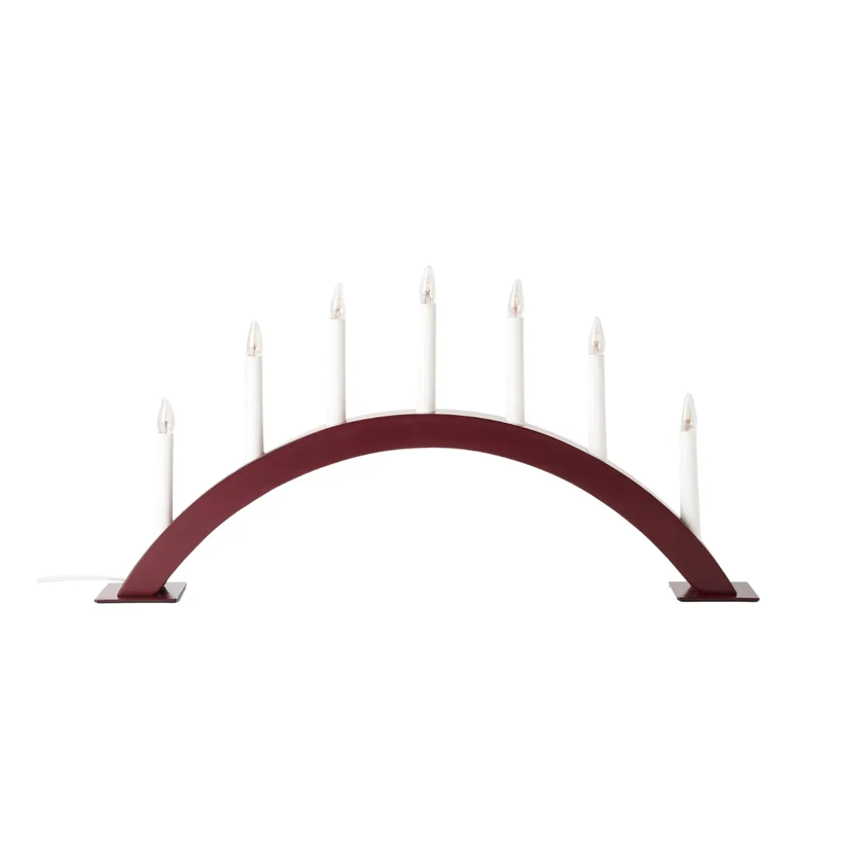 Halvmåneformad elljusstake med sju elektriska ljus, tillverkad i furu.