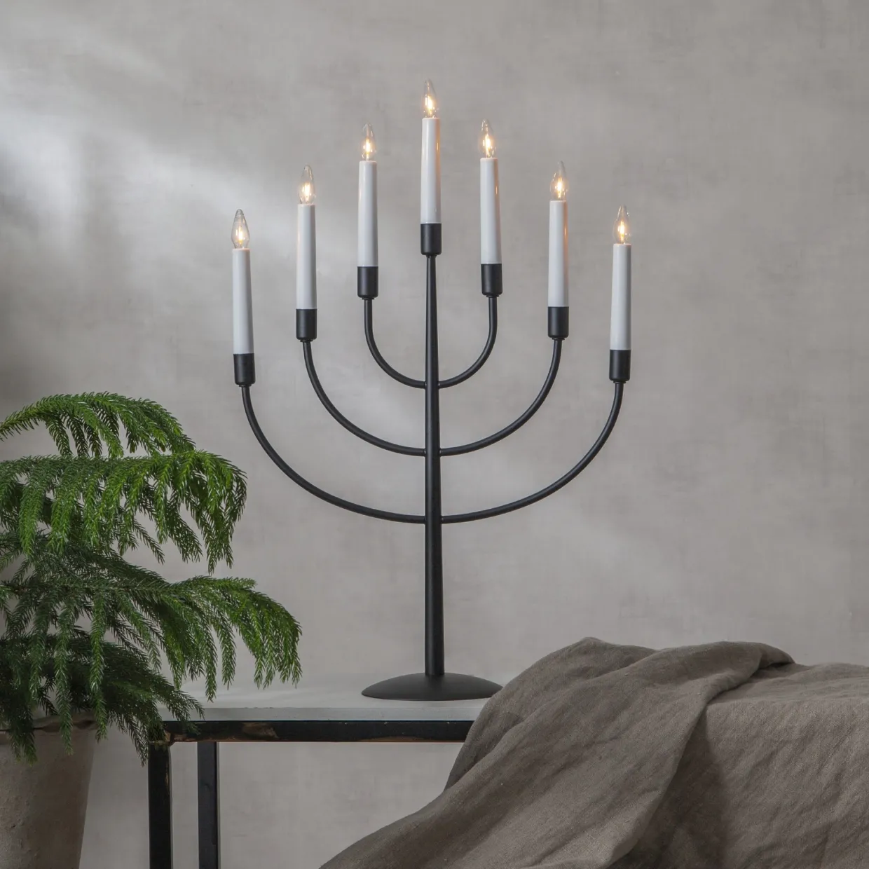 Skapa en stämningsfull jul med adventsljusstaken Titus i metall. Med sina 7 ljuskällor och mjuka soft glow-effekt sprider den ett varmt och behagligt sken som lyser upp hemmet under advent och jul. Den stilrena designen gör Titus till en tidlös juldekoration som passar lika bra i moderna hem som i klassiska miljöer. Tack vare den senaste ljuskällan får du ett jämnt och mjukt ljus som förhöjer julstämningen kväll efter kväll.