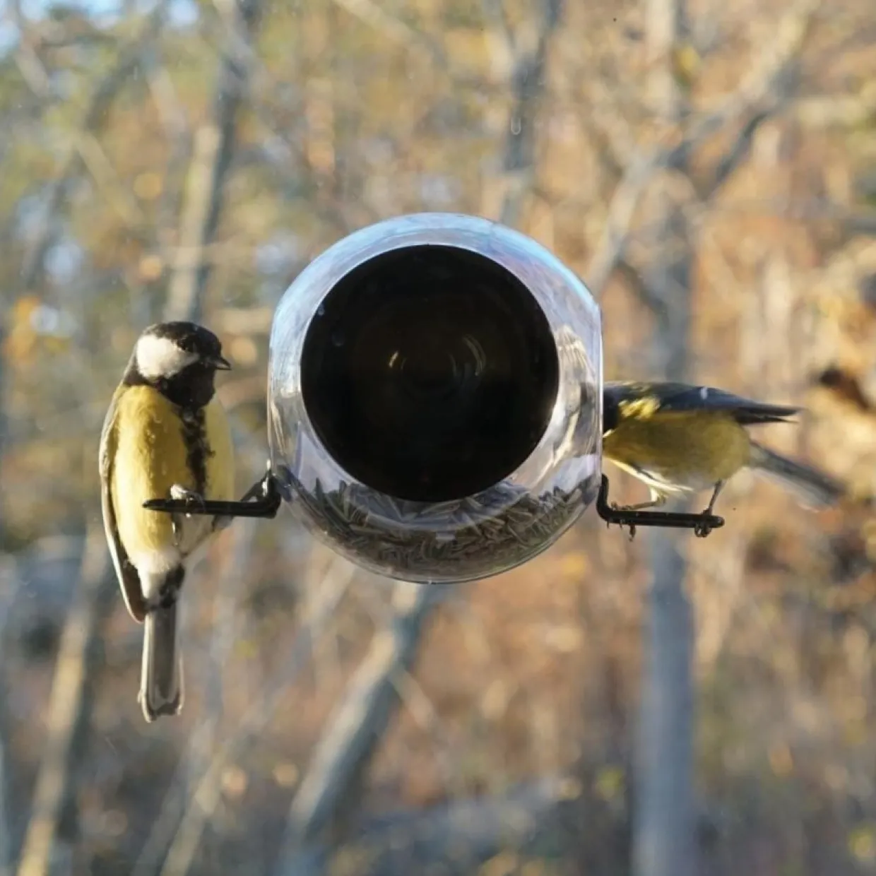 Smart fågelmatare som fästs på utsidan av fönstret – perfekt för fågelskådaren! Fågelmataren monteras med hjälp av den dubbelsidiga sugproppen som är svart för att förhindra att fåglarna flyger in i själva mataren. Den har ett dräneringshål och är lätt och diska, tål även maskindisk.