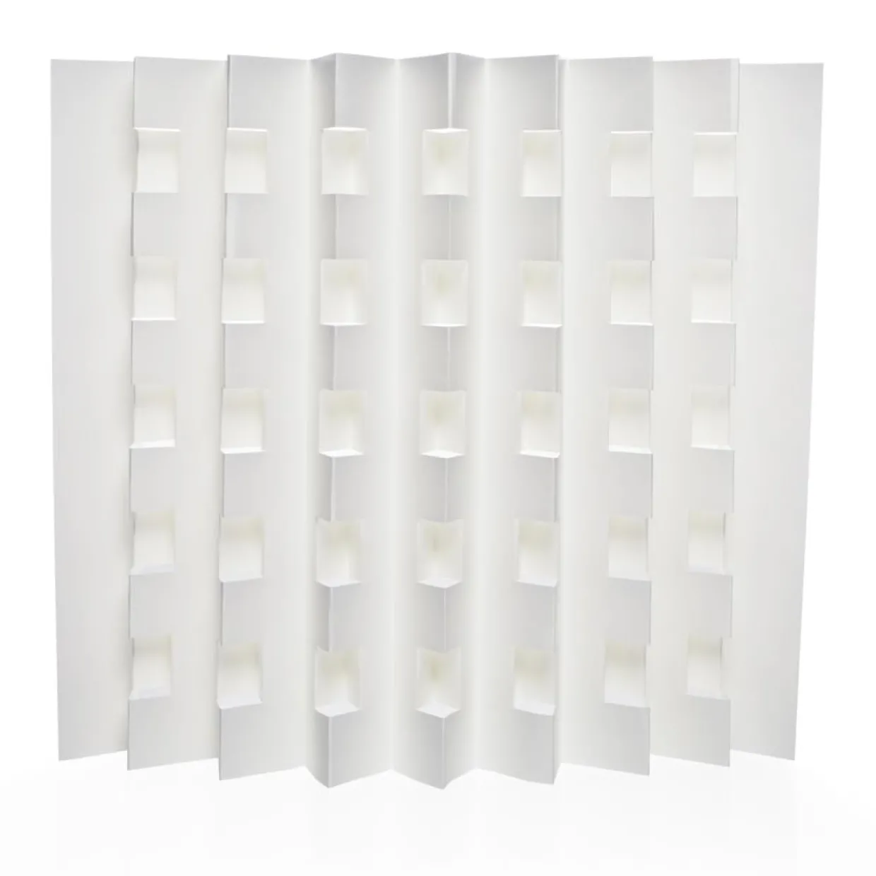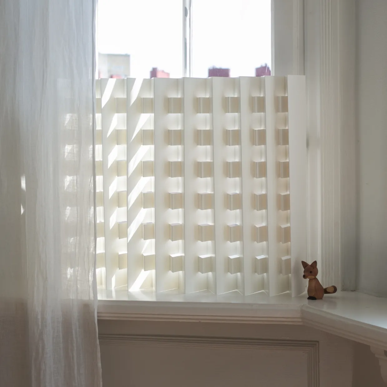 Fönsterskärm i stadig hårdpapp som fungerar som dekorativt insynsskydd och samtidigt släpper igenom ljus. Bättre kan det inte bli för dig som bor på marknivå eller har nära till grannen! Den är hopvikbar med möjligheten att variera bredden, maxbredd 110 cm.