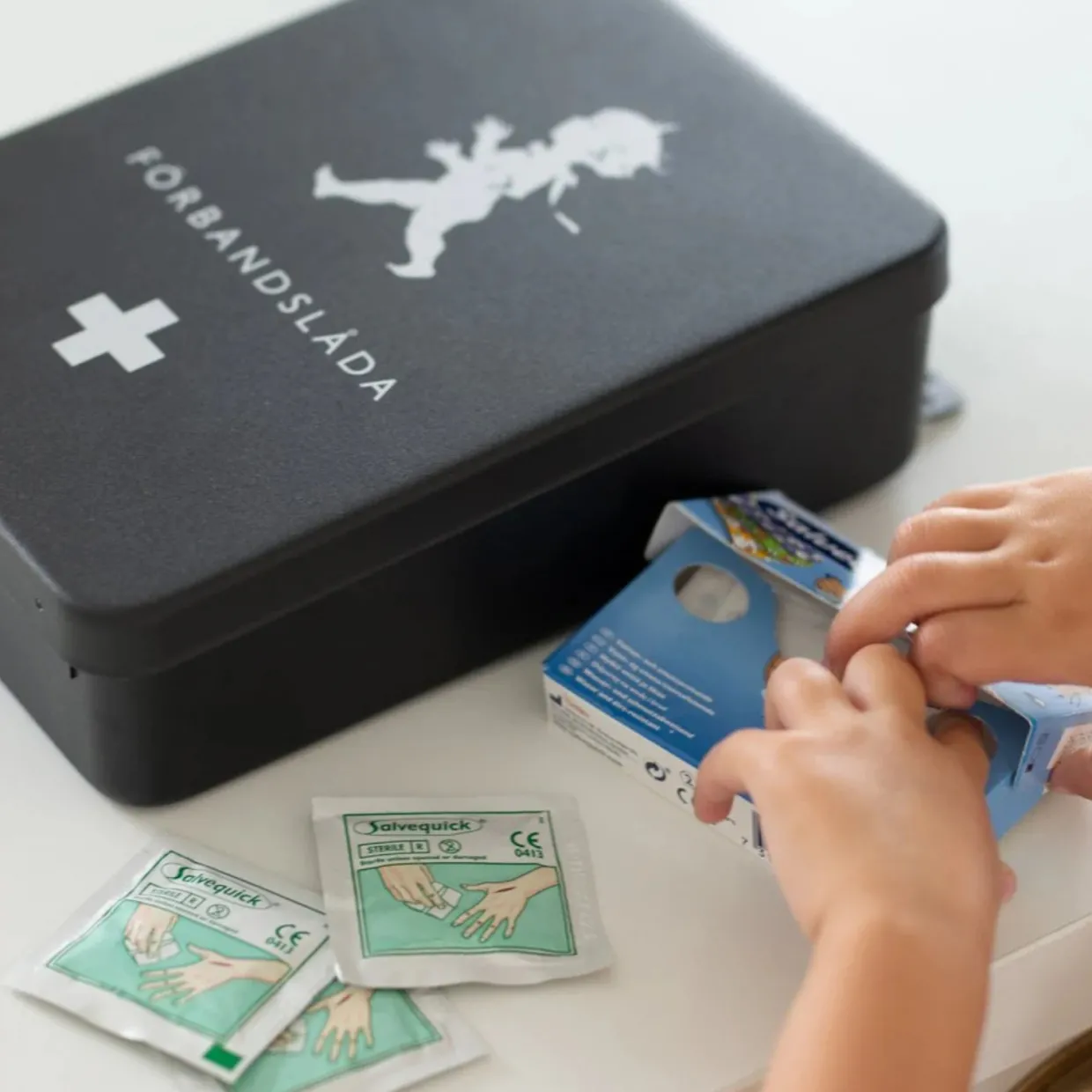 Håll ordning och reda på plåster, förband och medicin med vår rejäla förbandslåda tillverkad i pulverlackerat stål. Förbandslådan har ett vikbart fäste för smidig montering på vägg och kan enkelt hakas av och är lätt att föra med sig i bil, båt eller till sommarstuga.