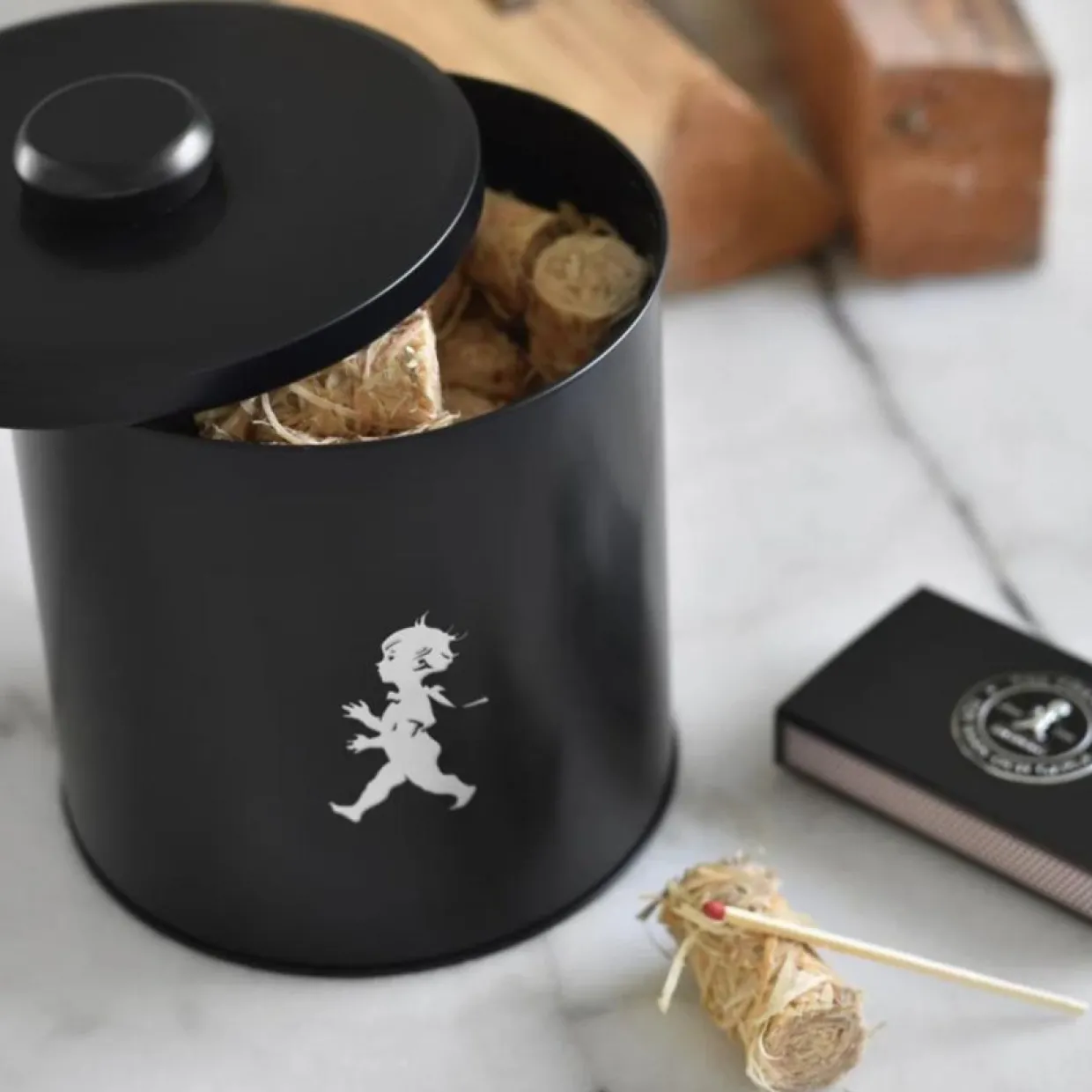 Håll värmen i vinter med den snygga och praktiska förvaringsburken för braständare från Solstickan Design. Elegant förvaringsburk med den klassiska Solstickepojken präglad på framsidan. Perfekt utformad för entusiastiska grillmästare och de som älskar mysiga ögonblick framför öppna spisen, nu har du alltid dina braständare nära till hands. Det tätslutande locket skyddar dina braständare från fukt och yttre påverkan.