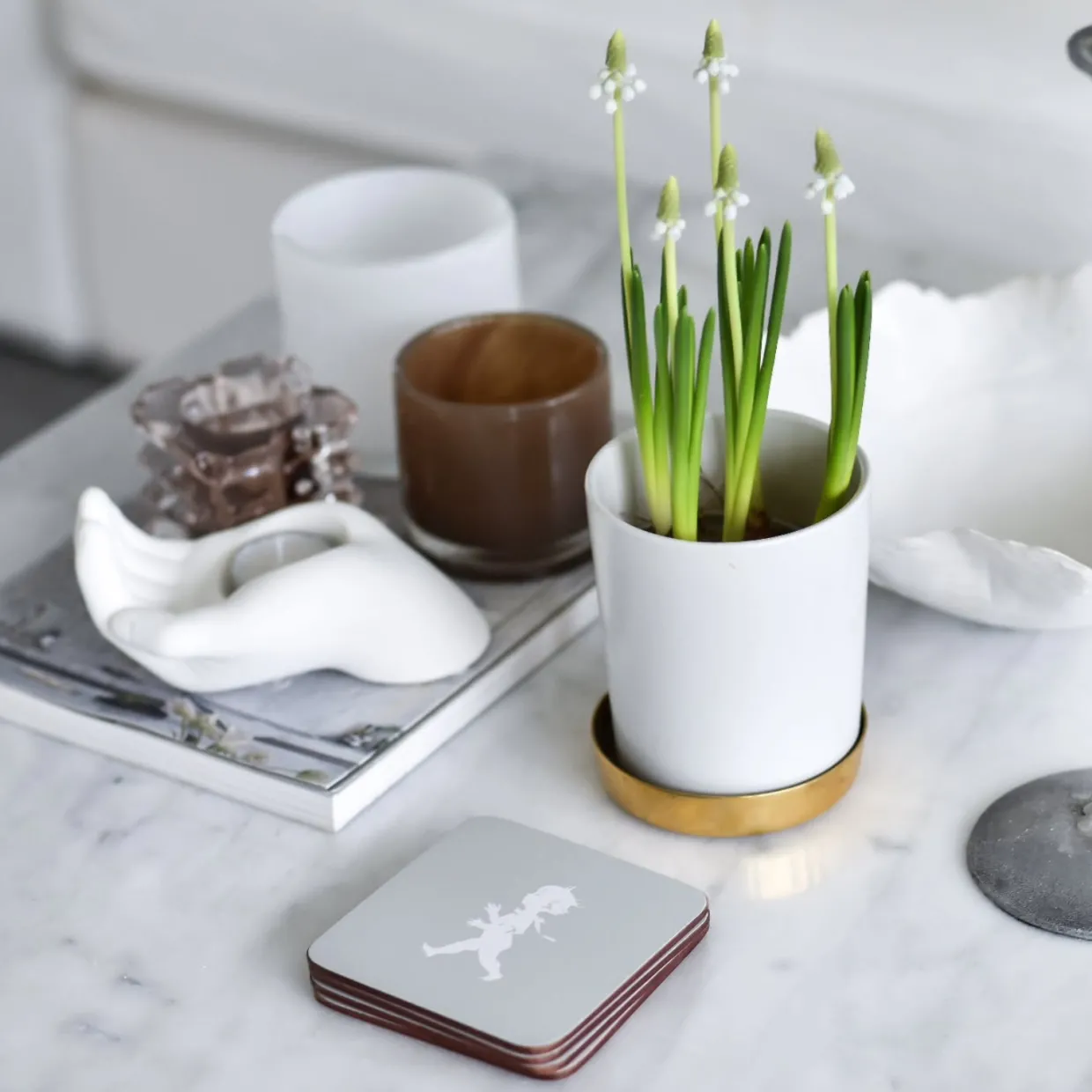 Fyra stycken stilfulla glasunderlägg med avbildning av den klassiska Solstickepojken skapad av Einar Nerman 1936. Gör sig lika fint till vardags som till bjudningen.