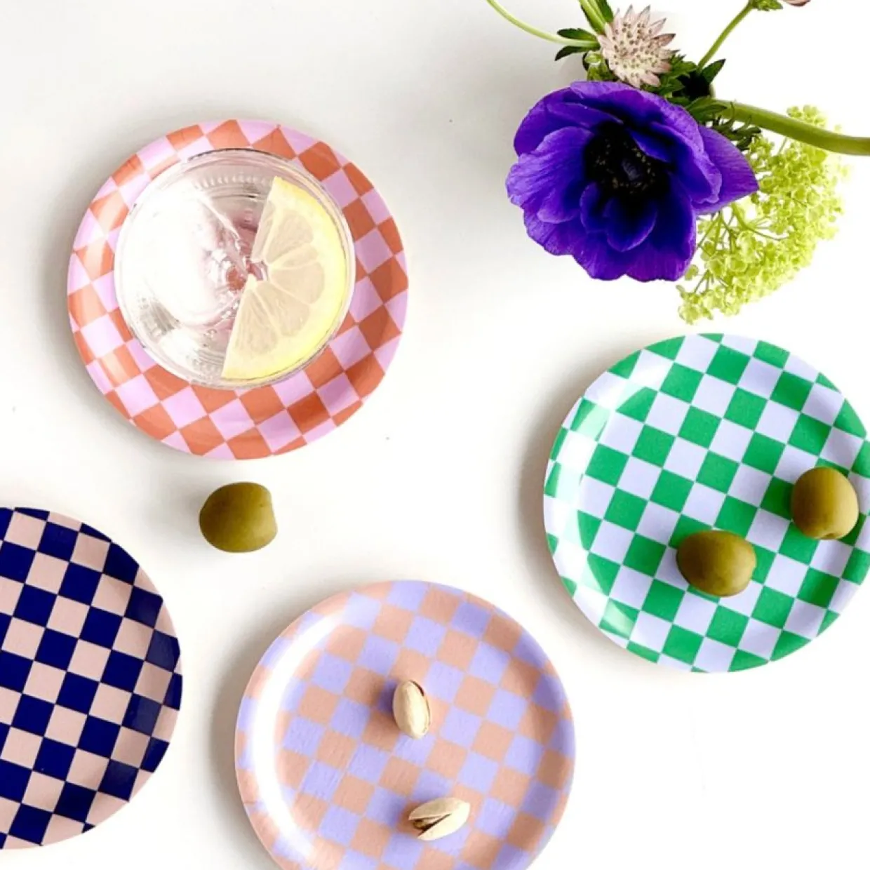 Servera sommarens drinkar med stil på dessa chica Checker glasunderlägg från BLU KAT! De fyra glasunderläggen har olika färger på rut-mönstret. Checker glasunderlägget har en perfekt storlek för att hålla ett dricksglas eller en kopp. De kan också användas som en söt minibricka för att servera snacks eller förvara nycklar och smycken. Matcha med Checker brickor och Cocktails glasunderlägg. Minibrickan är handgjord i Sverige enligt traditionell metod med FSC-certifierad björkfaner.