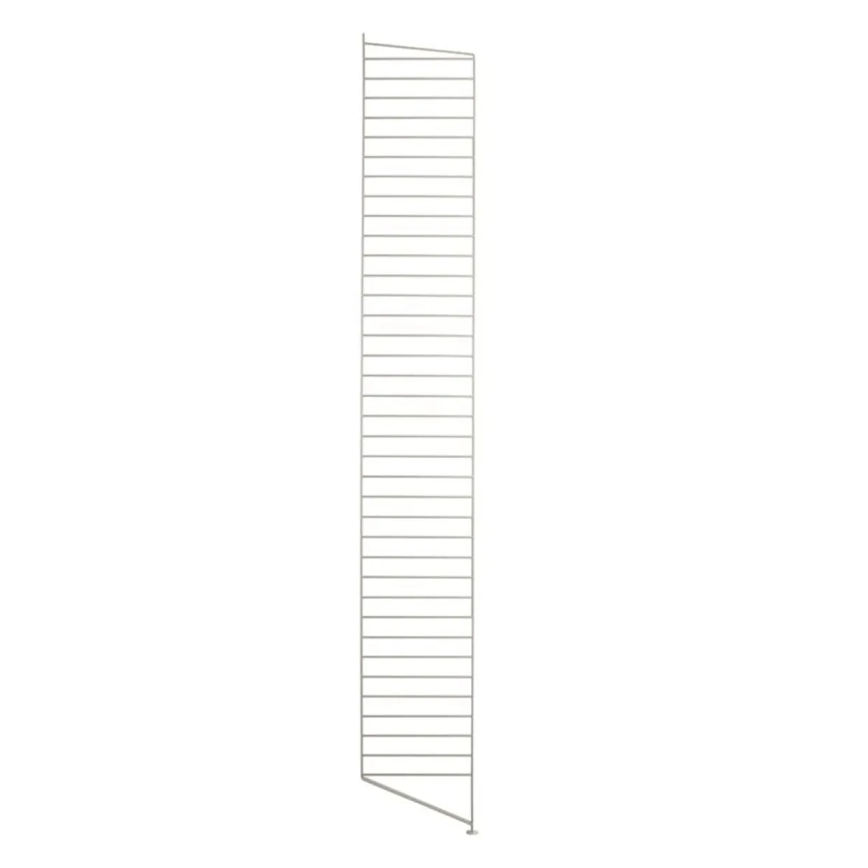 Golvgavlar finns i tre höjder, 85 cm, 115 cm, 200 cm, samt ett djup, 30 cm. Gavlarna är basen för att bygga din stringhylla. Därefter kan du addera produkter från String System förutsatt att de har 30 cm djup. Välj mellan en rad olika produkter så som hyllplan, skåp, lådhurtsar och tidskriftshyllor. Golvgaveln vilar mot golvet med sin fot vilket gör den väldigt stabil men samtidigt ger en lätt och luftig känsla. För att göra din hylla ännu mer funktionell och unik kan du komplettera med organizers, knivblock eller en tidskriftssamlare som hängs på gaveln. Golvgavlarna säljs i både 1-pack och 2-pack.