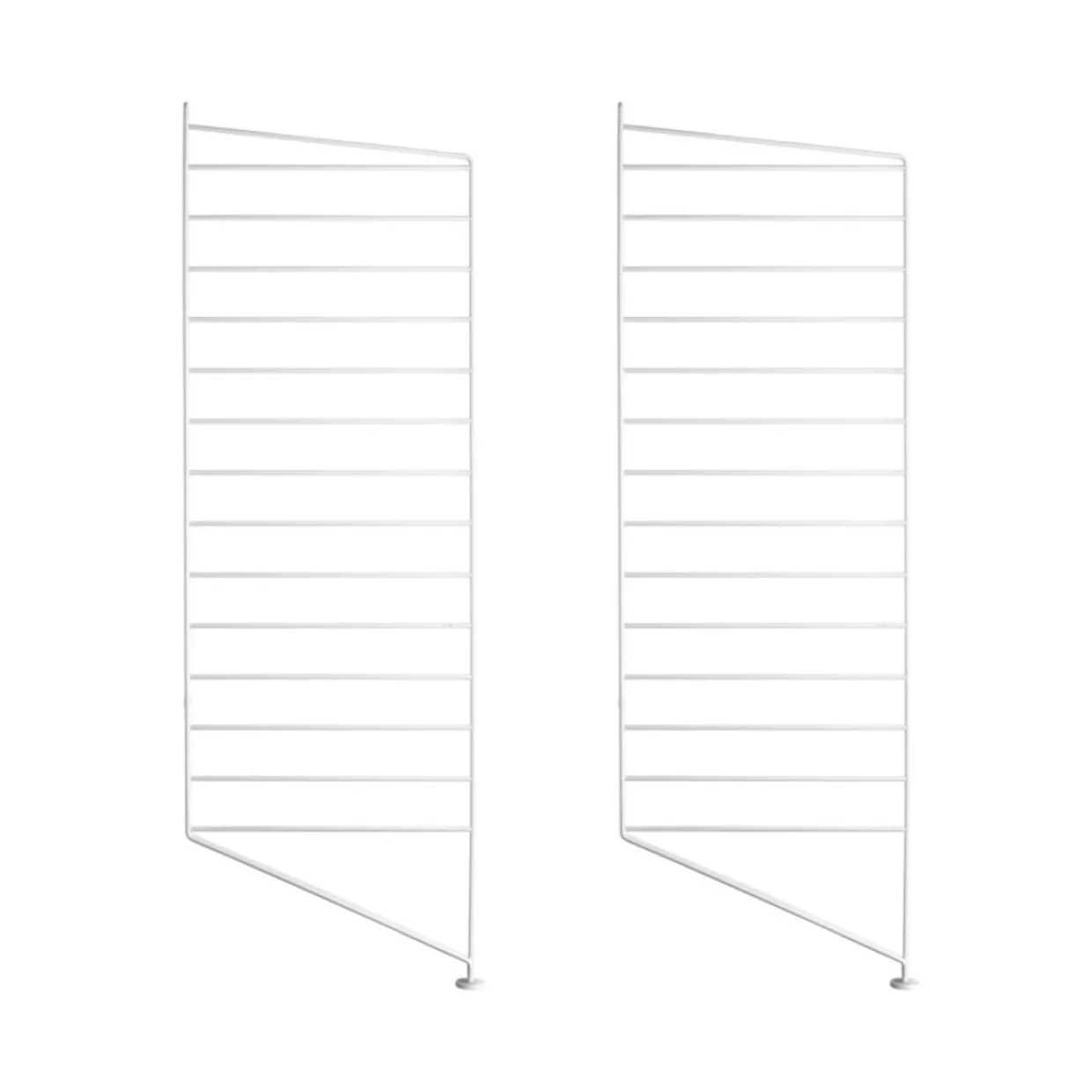 Golvgavlar finns i tre höjder, 85 cm, 115 cm, 200 cm, samt ett djup, 30 cm. Gavlarna är basen för att bygga din stringhylla. Därefter kan du addera produkter från String System förutsatt att de har 30 cm djup. Välj mellan en rad olika produkter så som hyllplan, skåp, lådhurtsar och tidskriftshyllor. Golvgaveln vilar mot golvet med sin fot vilket gör den väldigt stabil men samtidigt ger en lätt och luftig känsla. För att göra din hylla ännu mer funktionell och unik kan du komplettera med organizers, knivblock eller en tidskriftssamlare som hängs på gaveln. Golvgavlarna säljs i både 1-pack och 2-pack.
