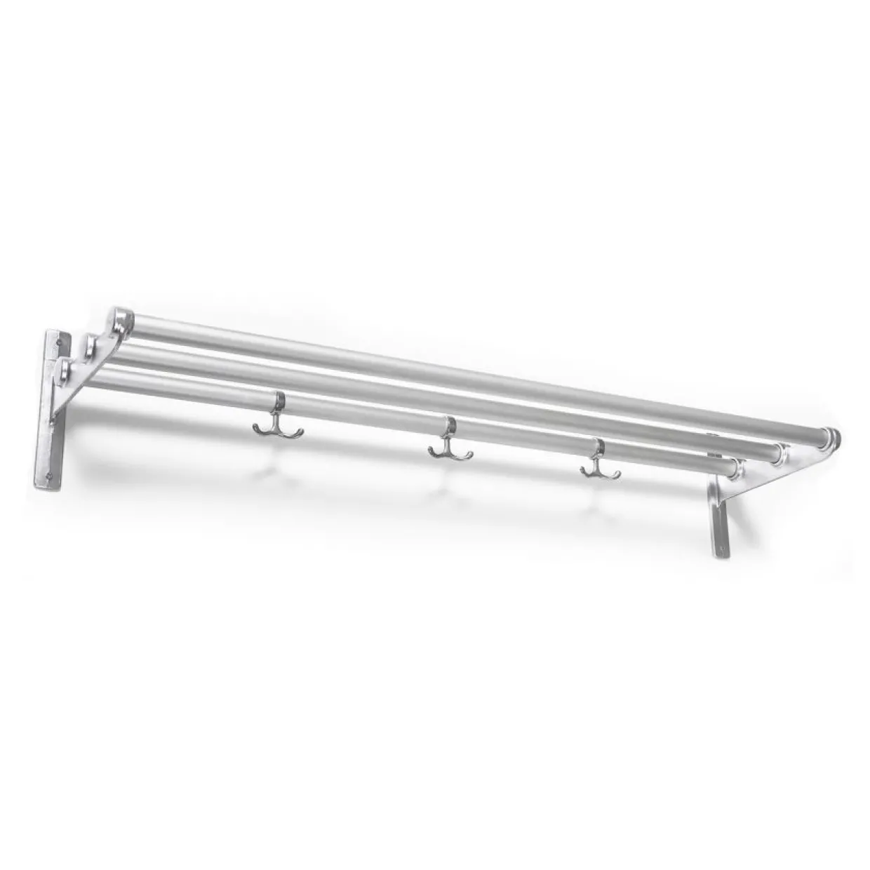 Retrosnygga hatt- och skohyllan Nostalgi ritades 1937 av Gunnar Bolin för Essem. Hyllan har kommit och gått genom decennierna, men ses idag som en klassiker i svensk möbelhistoria. Konsolerna tillverkas, nu som då, av nersmält aluminiumskrot som förenas av rundstav i aluminium. 3-pack ankarkrokar medföljer. Skruvar för upphängning ingår ej.