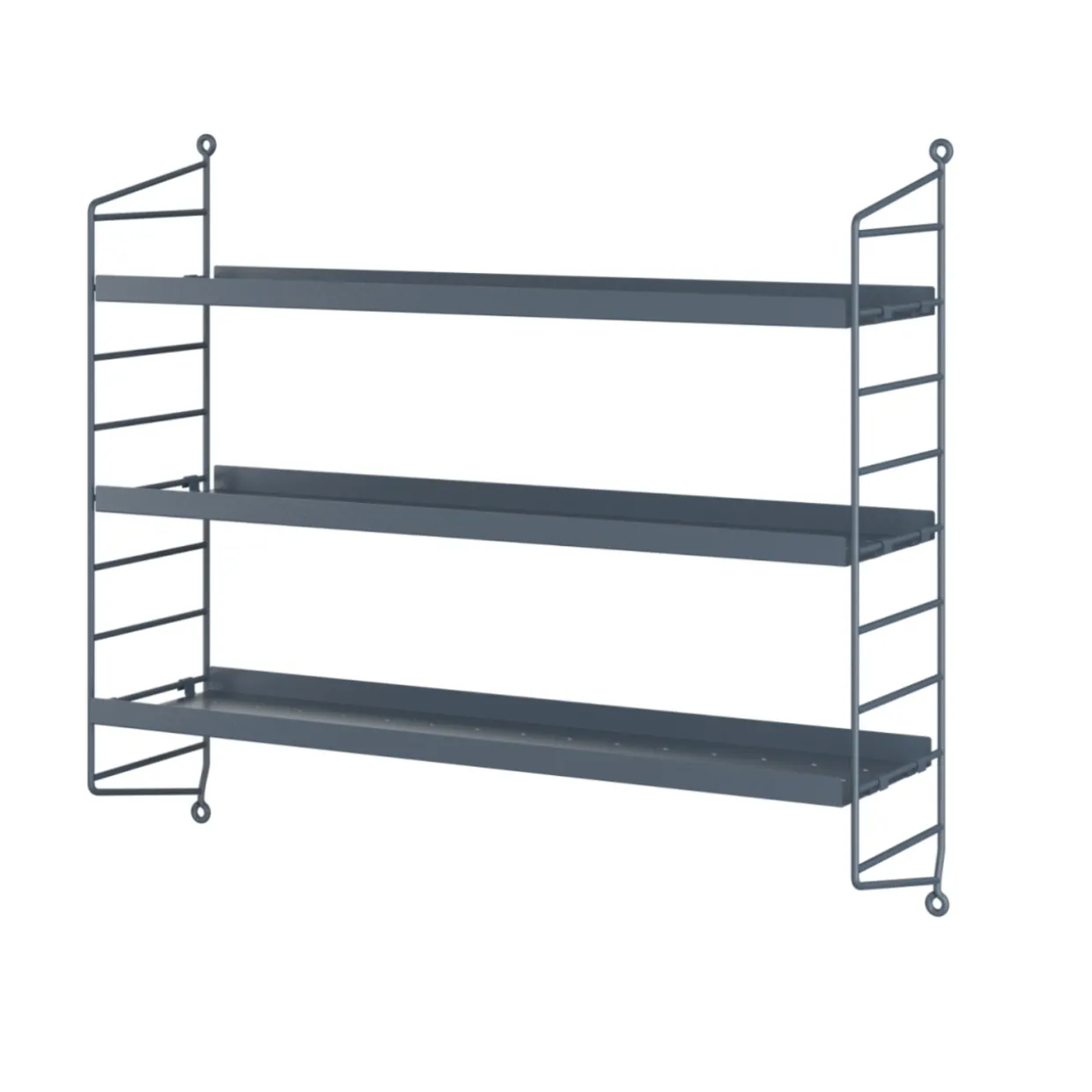 Hylla pocket från String är en fin klassiker för alla väggar och rum. Hyllan som består av tre hyllplan och två gavlar är perfekt till att förvara pocketböcker i men passar minst lika bra som kryddhylla i köket. String Pocket går att kombinera på flera sätt. Köper du ett paket får du en hylla. Köper du två paket kan du bygga upp till tre sektioner. Låt fantasin flöda och bygg just din unika String Pockethylla!