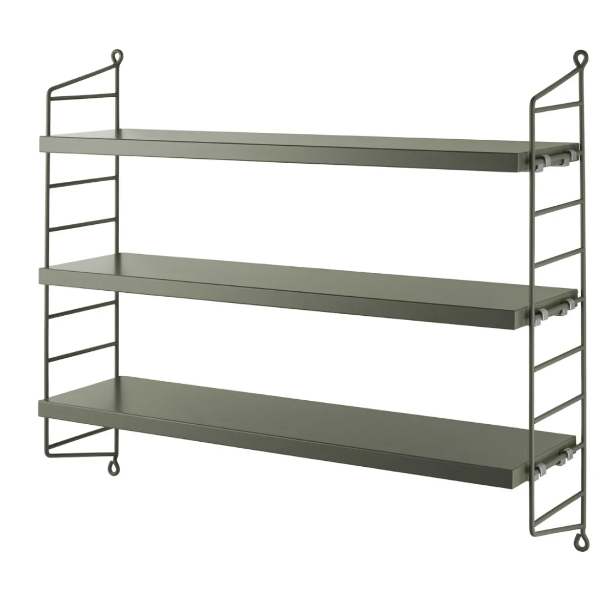 String Pocket går att kombinera på flera sätt. Köper du ett paket får du en hylla. Köper du två paket kan du bygga upp till tre sektioner. Låt fantasin flöda och bygg just din unika String Pockethylla!