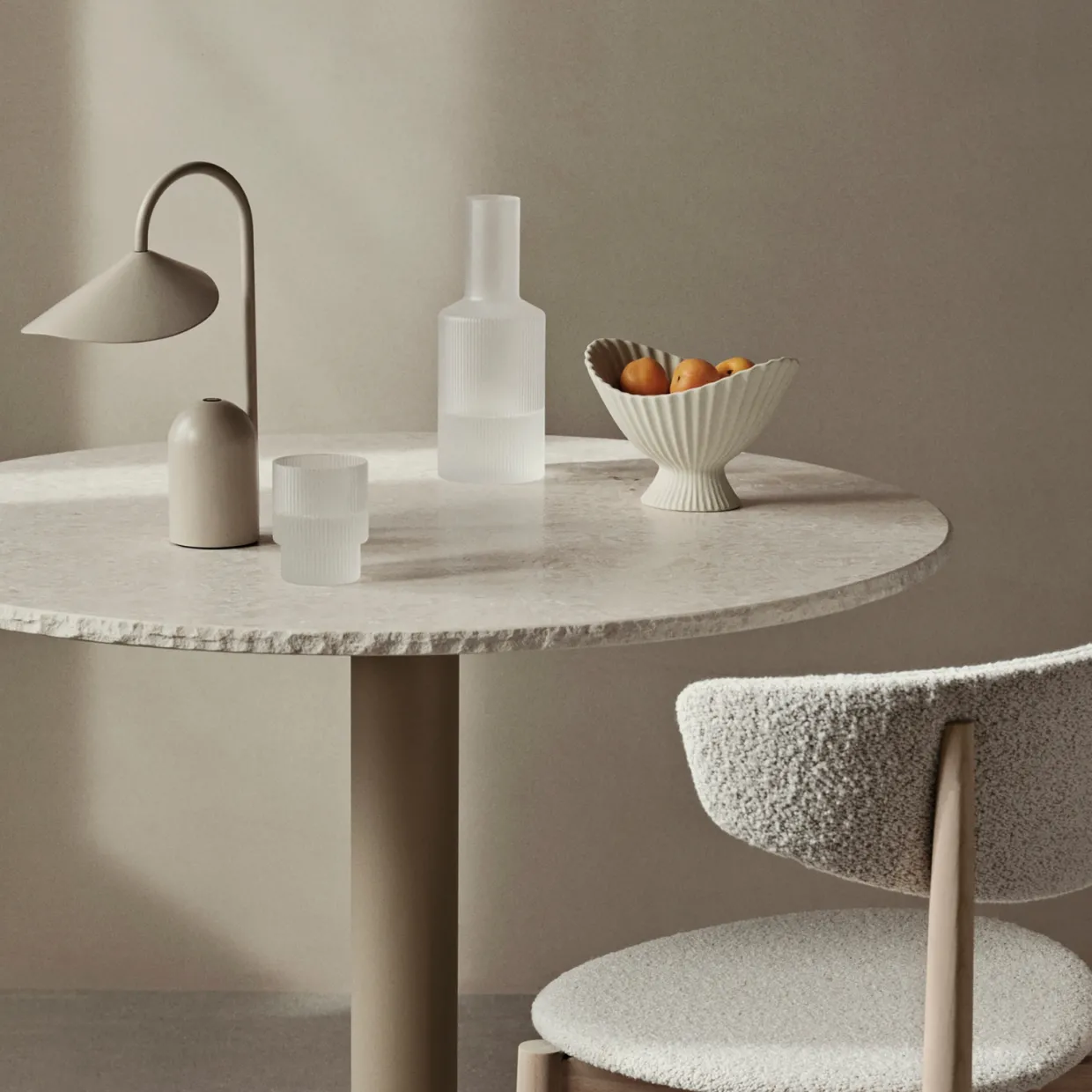 Denna praktiska och vackra karaff från Ferm Living är munblåst och har en krusig design för ett modernt utseende. Fyll på med vatten, juice eller din favoritdryck och häll i något av de matchande Ripple glasen i samma serie.