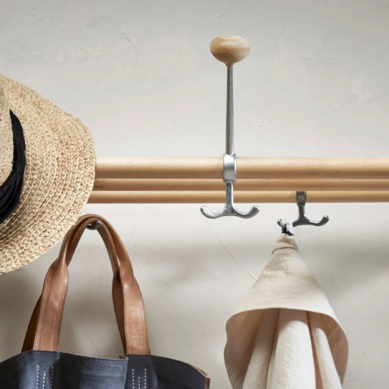 Hattkroken Oskar är ett tillbehör till Gunnar Bolins välkända hatthylla Nostalgi från Essem Design. Kroken har en stång i återvunnen aluminium med en rejäl knopp av ek. Kroken är även utrustad med två mindre krokar för väskor eller jackor.