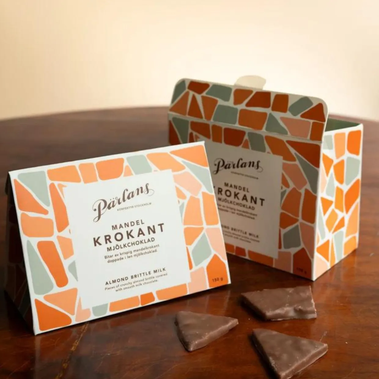 Krokant från Pärlans kommer i tre oemotståndligt goda smaker. Upptäck krispig krokant, bruten i bitar och doppad i choklad – en liten varning, det är alldeles omöjligt att bara äta en.