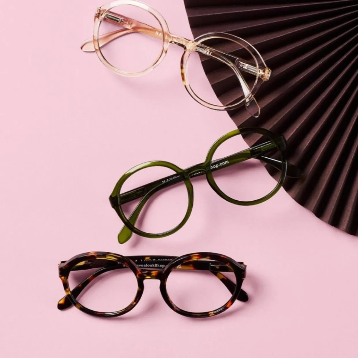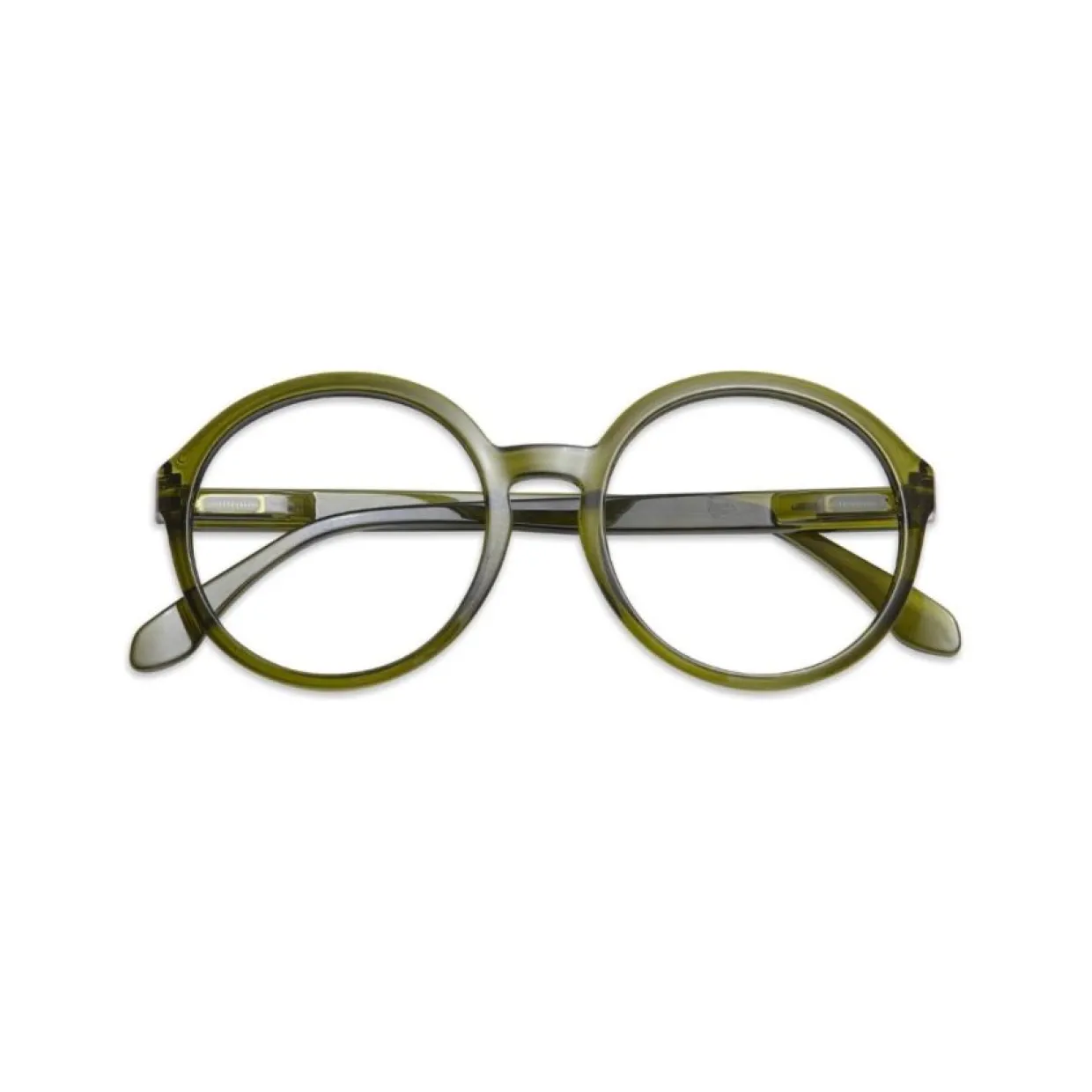Läsglasögonen Diva med stor, rund, tunn boga i en vacker grön semitransparent nyans. Diva är oversize och tar plats men ändå är lätta att bära.