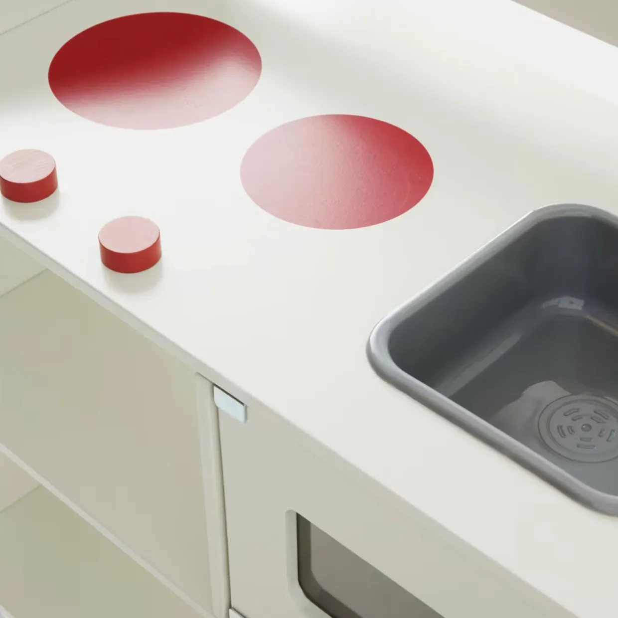 Pedagogiskt leksakskök i trä med spännande detaljer som vridbara spisknappar, ugnslucka, diskho och vattenkran. Med TOMMY kök kan barnet baka och laga mat och bjuda hela familjen på fest! Levereras omonterad. Monteringsanvisningar medföljer. Från KOJA.