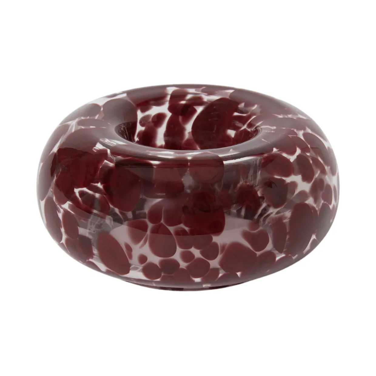 Ljushållare för värmeljus, tillverkad i glas med en spräcklig yta.