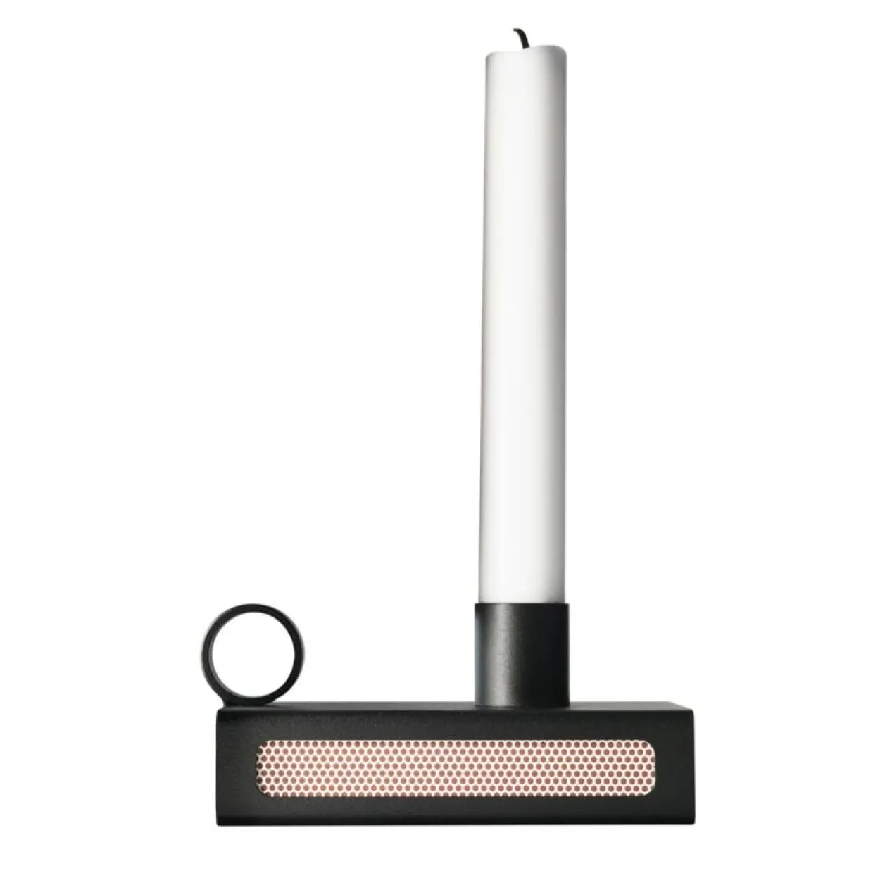 Ljusstake Boxlight av Kristina Stark är såväl dekorativ som praktisk. Ljusstaken består av ett tändsticksaskfodral med hållare för ett stearinljus. Tillverkad av pulverlackerat järn i Sverige. Ask ingår.