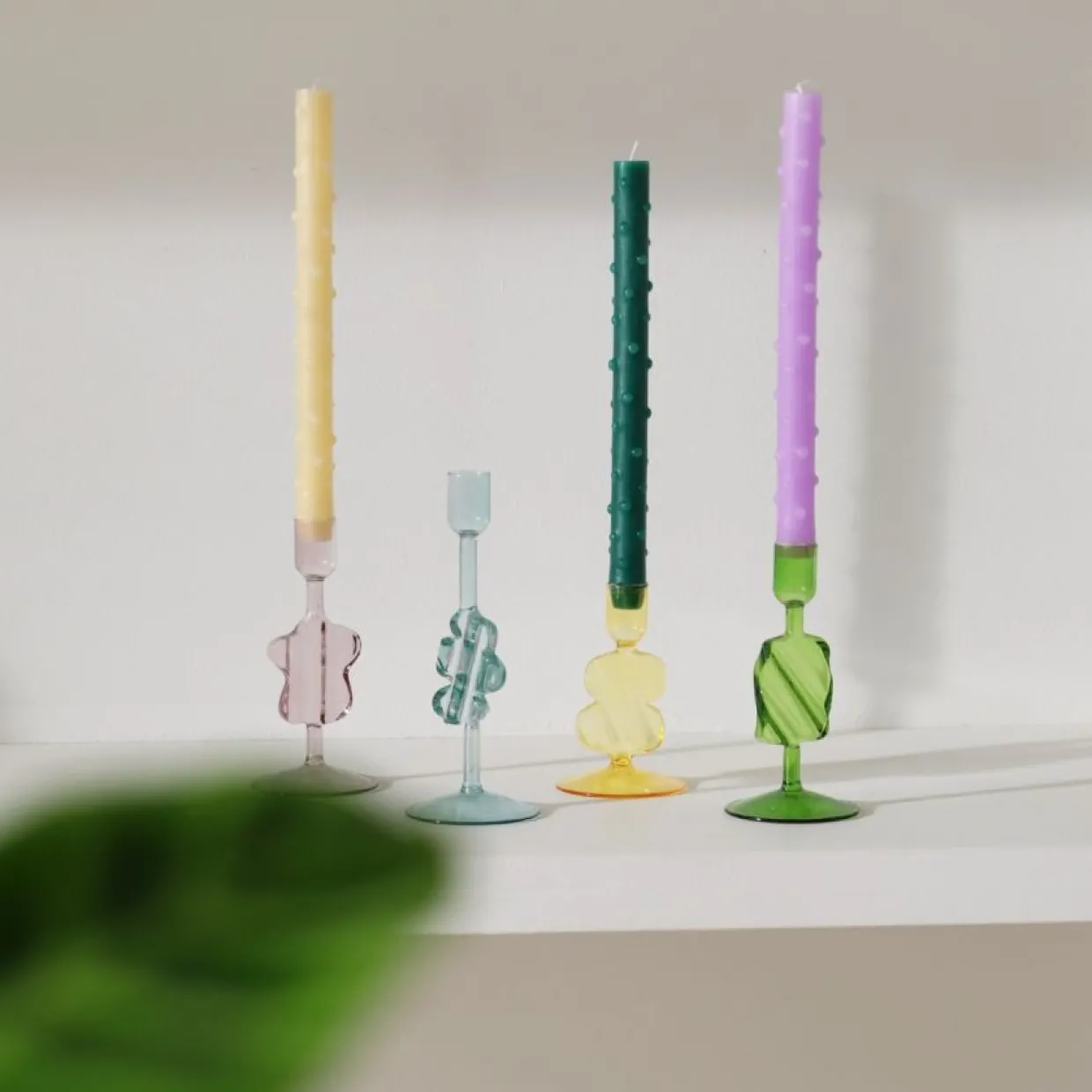 Ljusstake i glas från &Klevering. Blanda alla tre färgerna eller använd bara en. Finns i färgerna grön, rosa och gul.