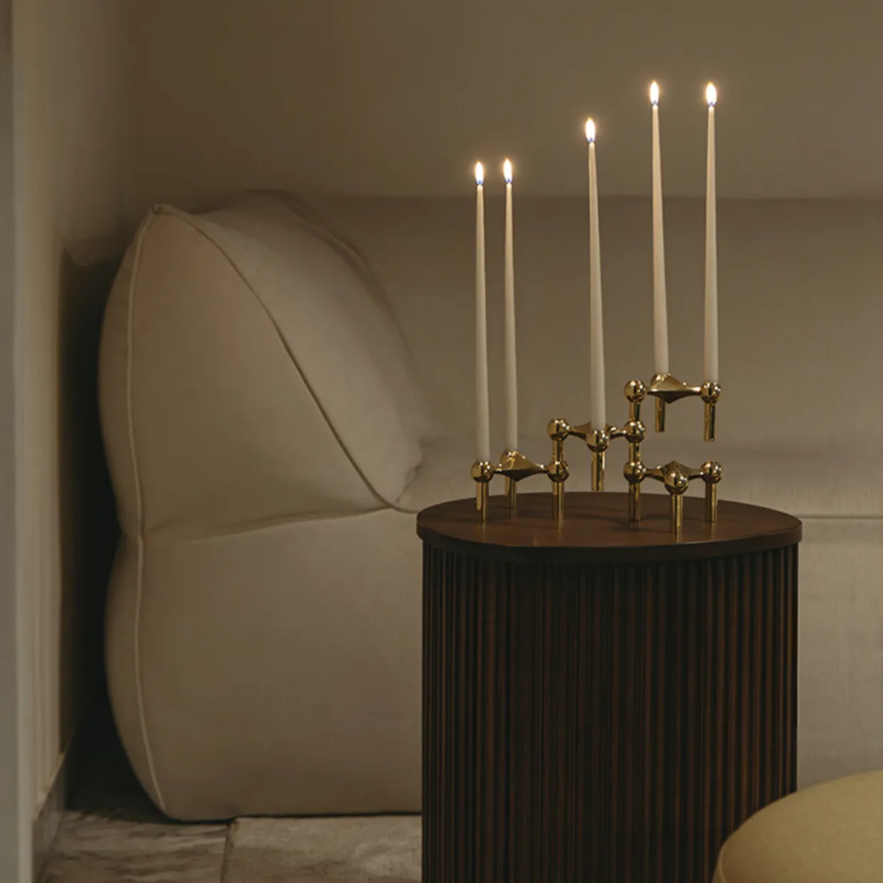 Ljusstaken i massiv mässing är den mest exklusiva medlemmen i STOFF Nagel-familjen. Den ses som ett konstverk – ett personligt uttryck och en formbar skulptur, redo att ta gestalt efter sin ägares unika kreativitet. Skapa och kombinera den med andra STOFF Nagel-designs och använd den med kronljus, eller låt den stå som en dekorativ skulptur i sig själv.