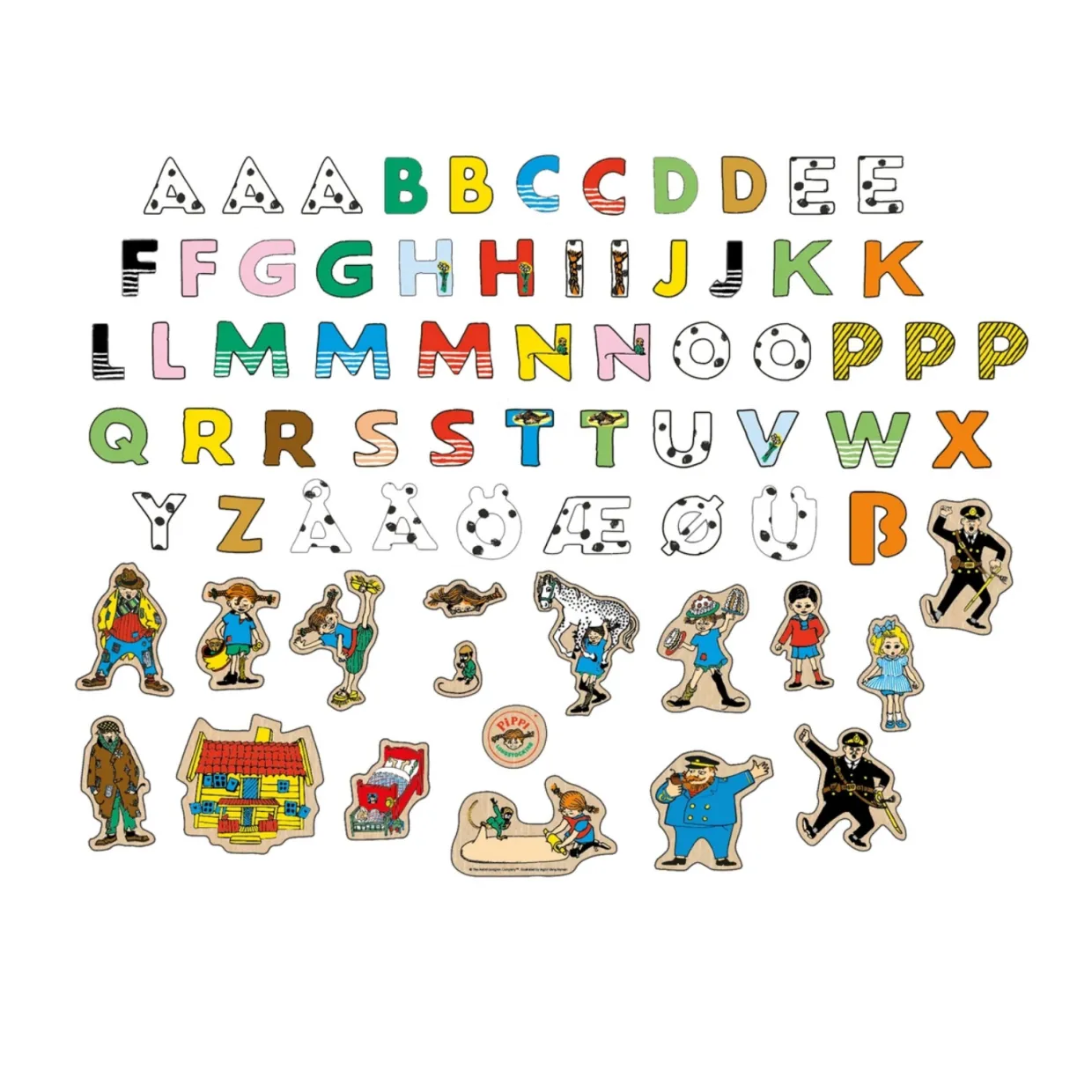 Lek med bokstäver och populära karaktärer från Pippi Långstrump! Magneterna kommer i en lekfull mix av färger och Pippi och hennes vänner gör magnetleken ännu roligare. Setet innehåller 55 bokstäver från dom nordiska och tyska alfabeten och 17 figurer. Genom att leka med bokstäver och bygga ihop namn och ord lär barnet känna bokstävernas former och kan öva på uttal och stavning.