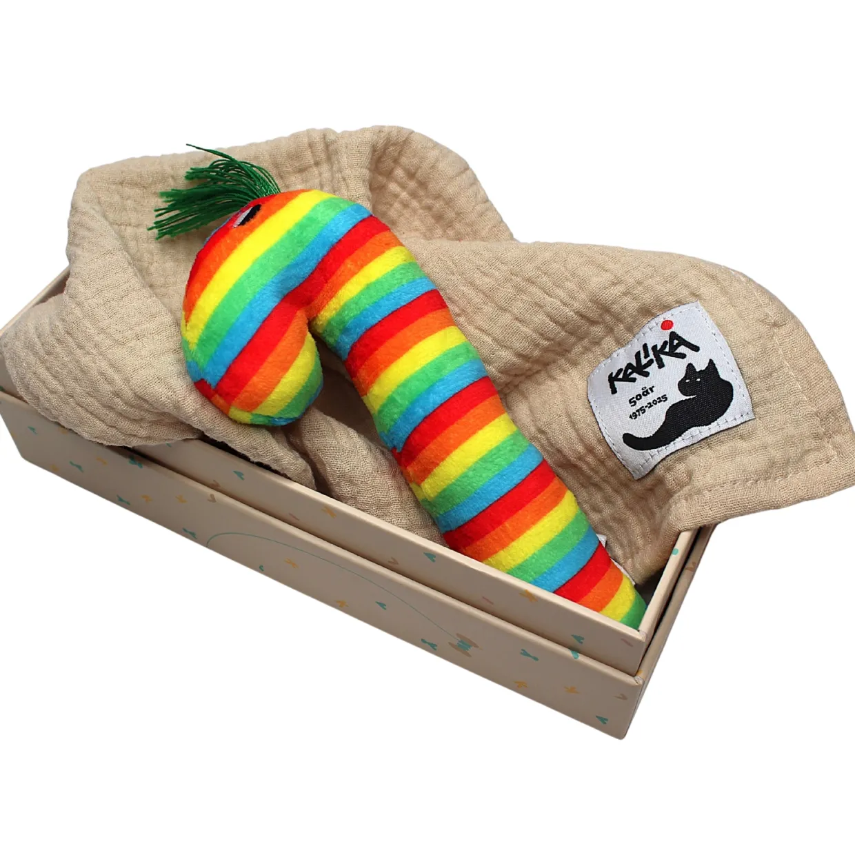 med oss i 50 år! Kalikås klassiska maskskallra i fin presentförpackning med snuttetrasa.