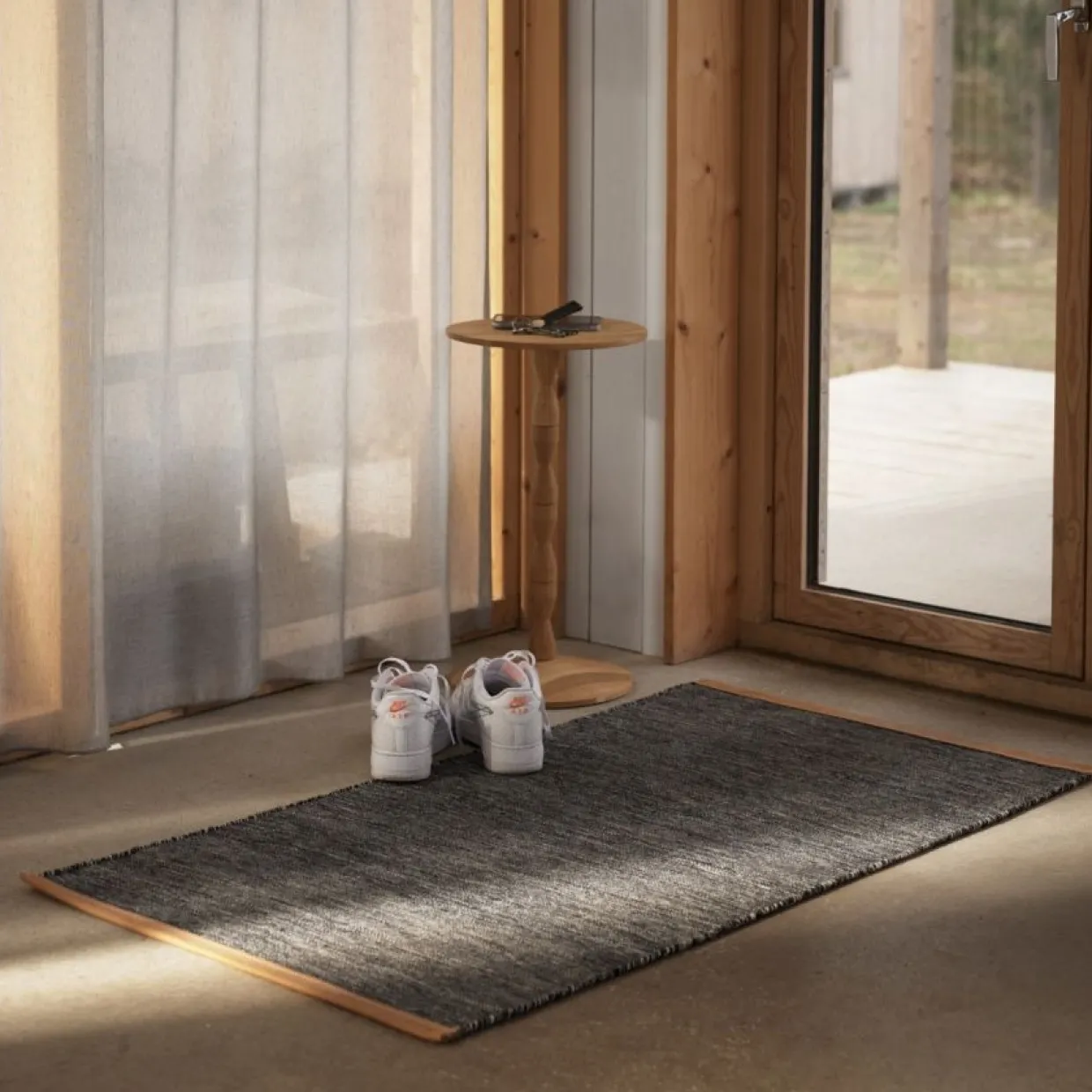 Mattan Björk från Design House Stockholm är handvävd i ull med kanter av läder. Inspirationen till Björk-kollektionen har formgivaren Lena Bergström hämtat från just björken. Den vävda strukturen och färgkombinationerna i varje matta påminner om björkens melerade bark. Lädret som ramar in mattan är inspirerat av den nakna barken under björkens näver. Mattan skapar en harmonisk, slät textilyta i hemmet, lika vacker och naturnära som sten eller trä.