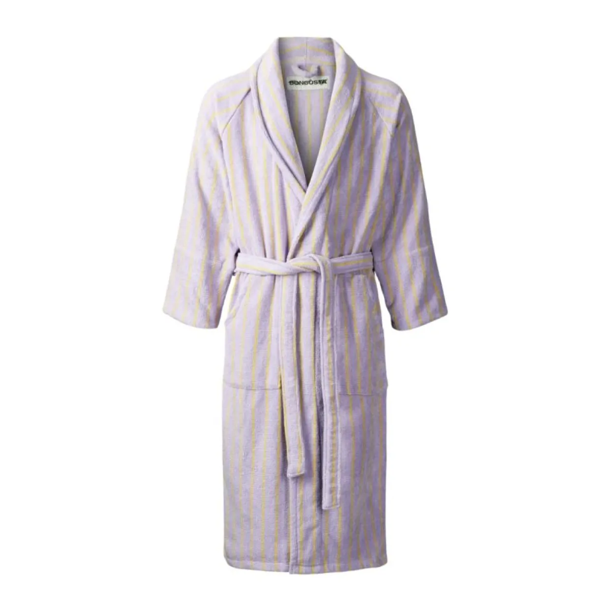 Badrocken Naram har en klassisk men modern design med fina färger och ränder. Badrocken kommer med sjalkrage, öppen front, bältesstängning och två rymliga fickor – perfekt för avslappnade morgnar eller bara hemmamys i soffan.