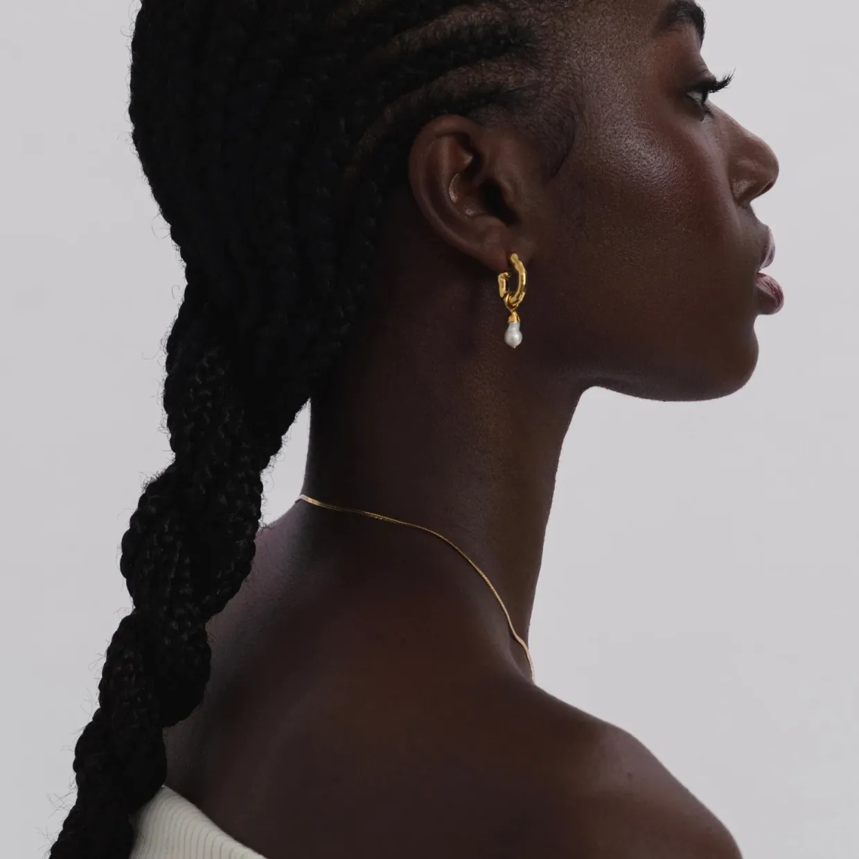 Örhänge med hamrad finish och ett hänge med en barockpärla. Pärlan varierar i form, vilket verkligen gör varje smycke helt unikt. Tillverkat i 100% återvunnet sterlingsilver, pläterat med 18K guld. Från Syster P