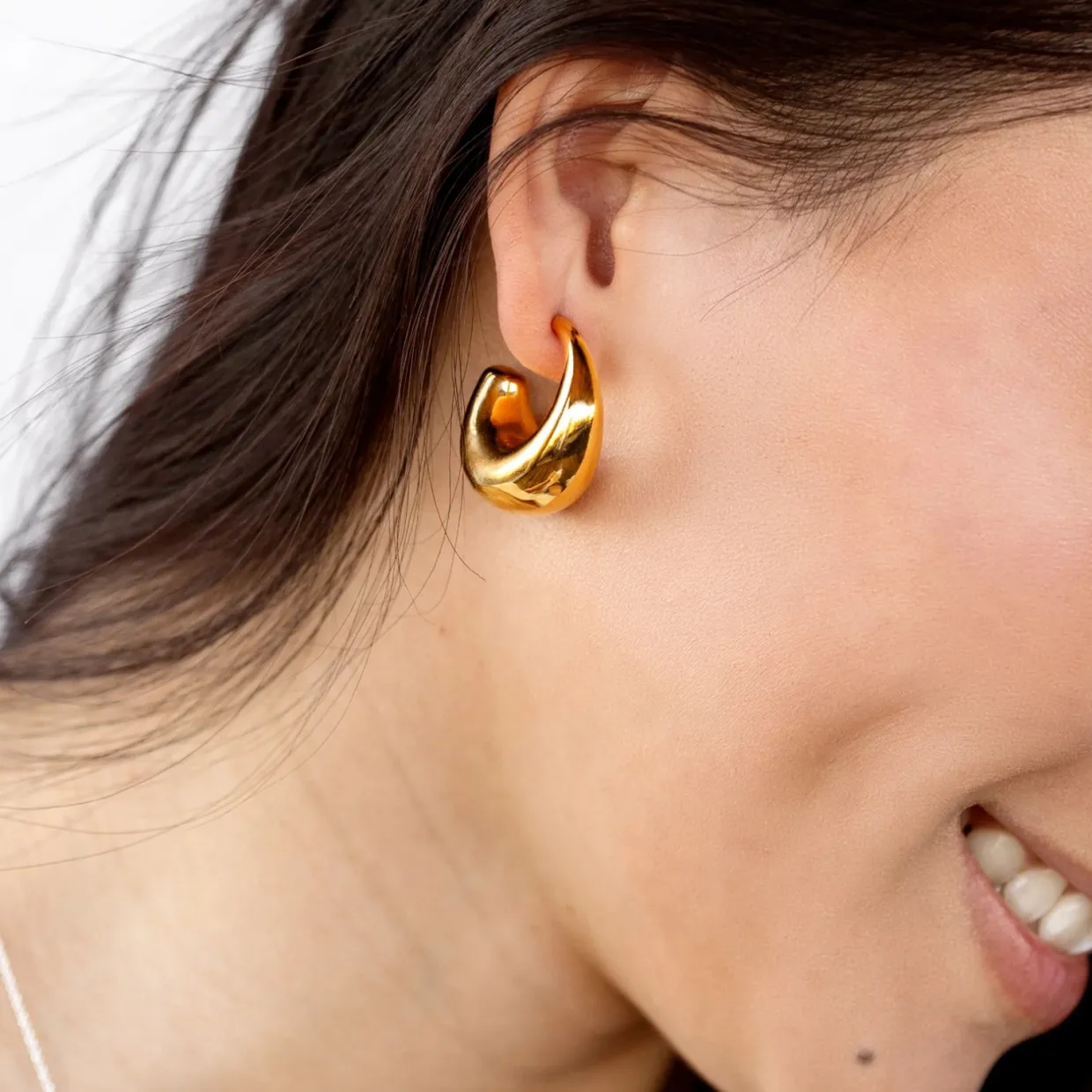 Stora lätta örhängen med unik form tillverkad i 100% återvunnet sterlingsilver, pläterade med 18K guld. Bär dessa statement örhängen ensamma eller eller matcha med andra smycken från bolded kollektionen. Från Syster P.