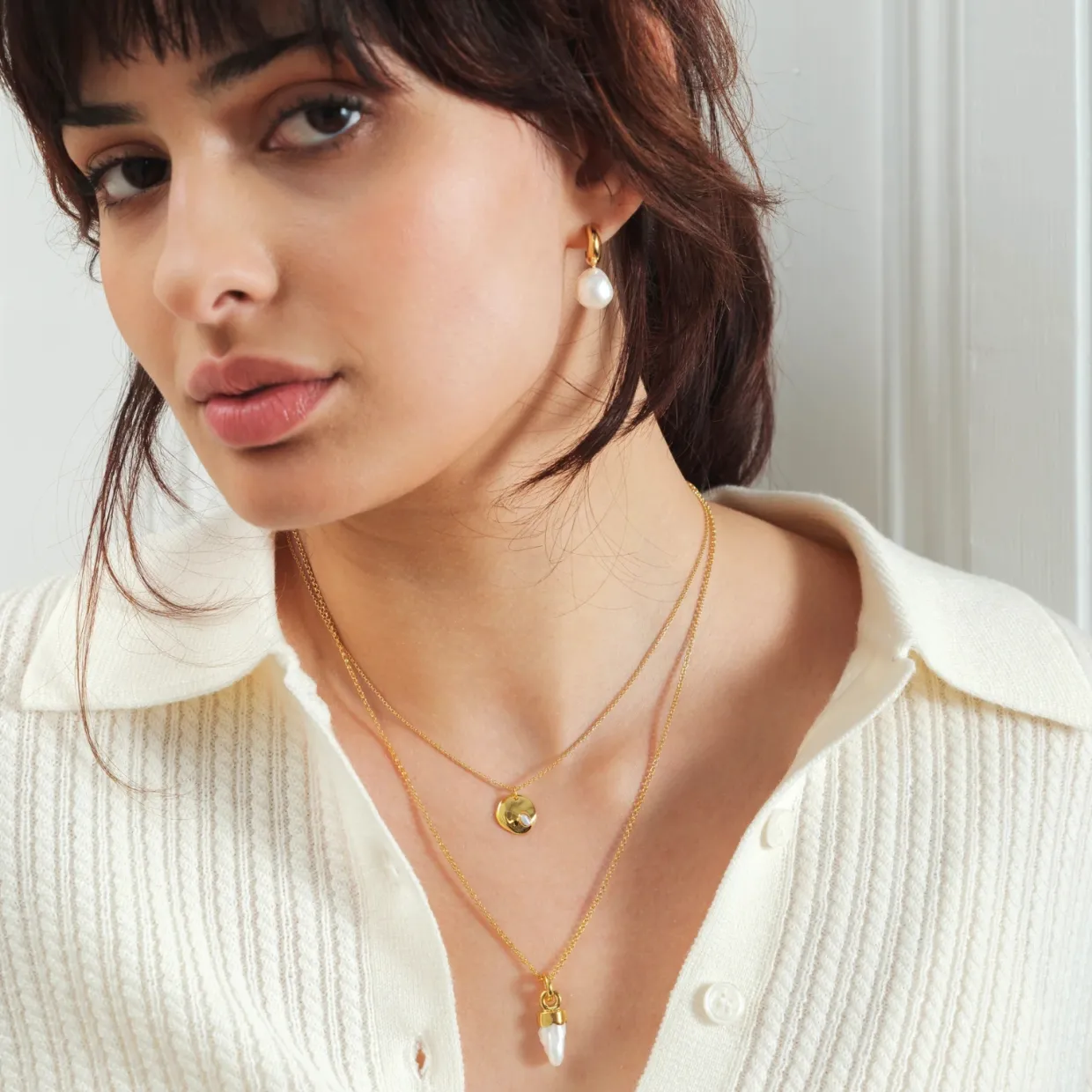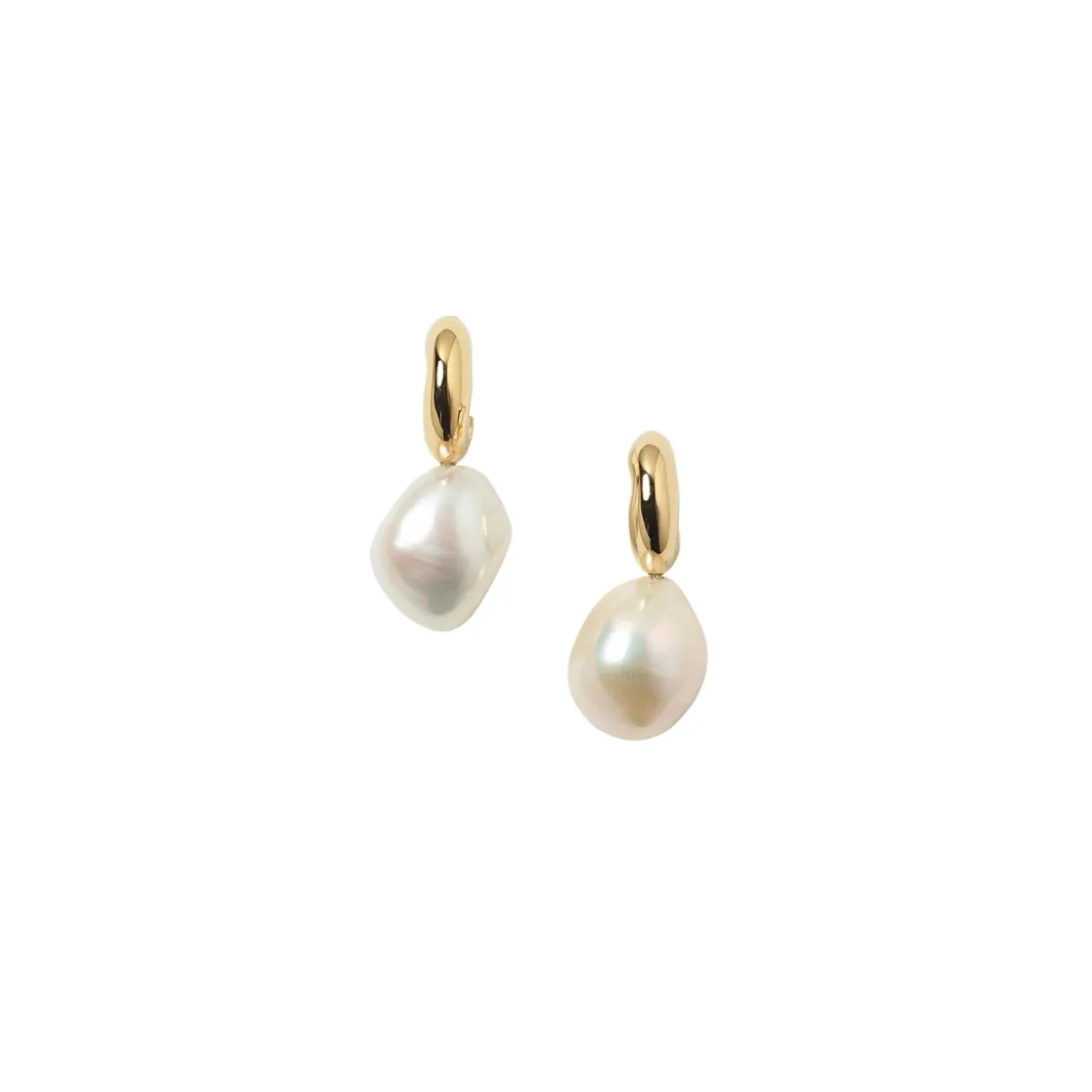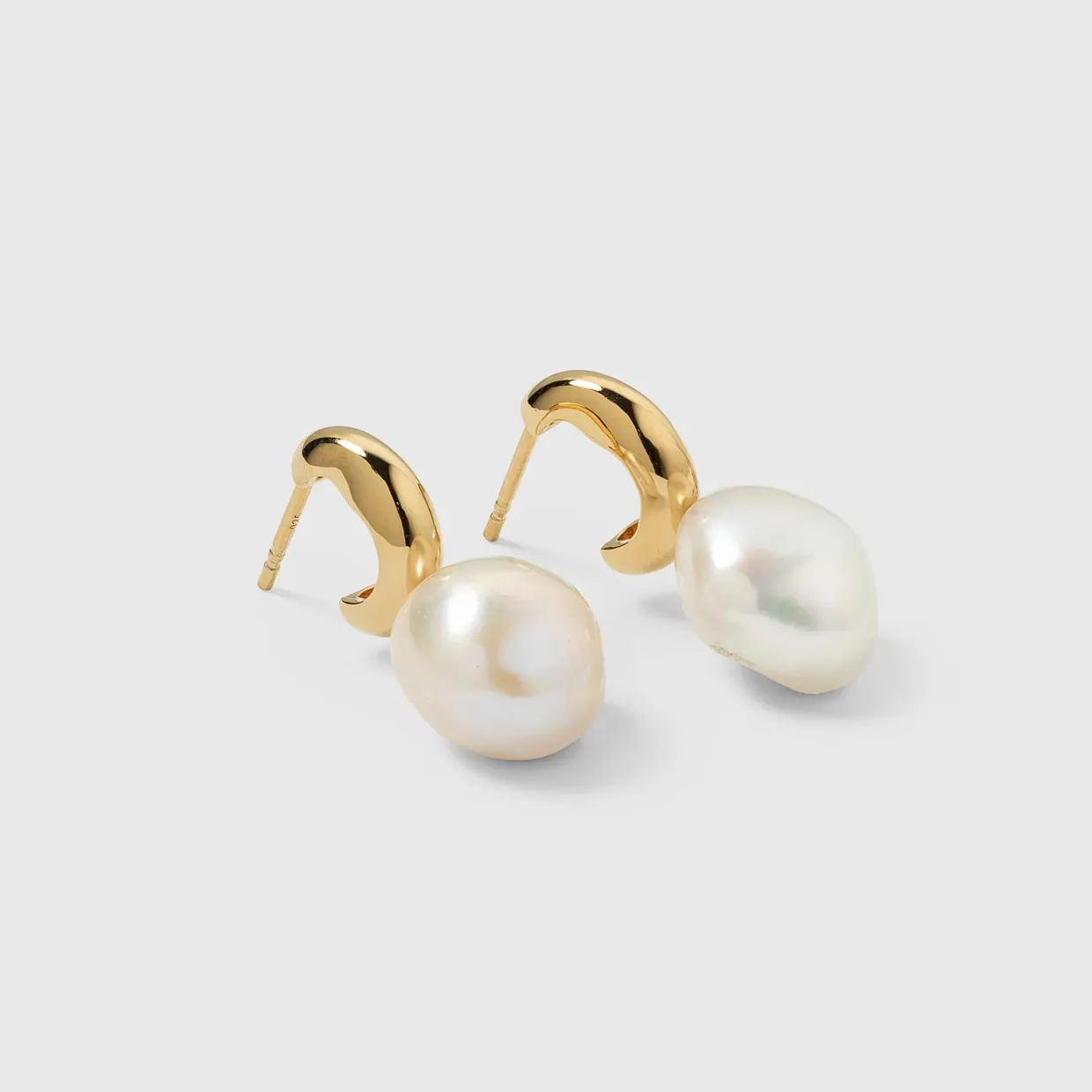 Pärlörhängen tillverkade i 100% återvunnet sterlingsilver, pläterade med 18K guld. Den unika sötvattenpärlan framhäver skönheten i det oregelbundna. Från Syster P.