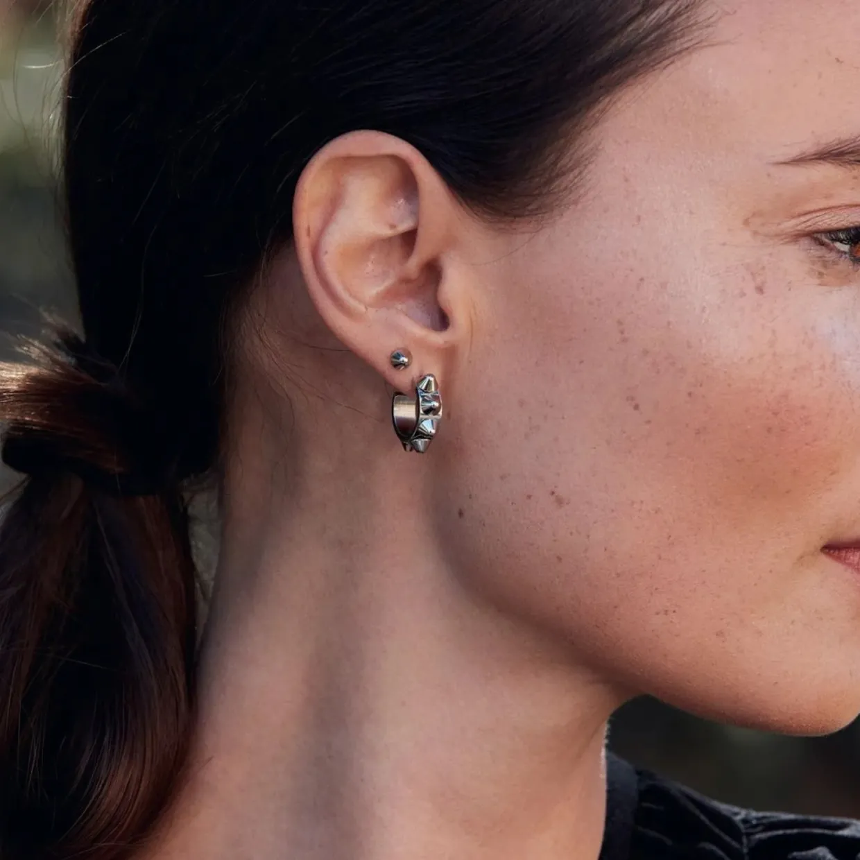 Peak är serien där de stiliserade bergstopparna påminner om punkiga nitar. Peak creoler small är ett par par häftiga mindre örhängen som är så snygga på, här i blankt rostfritt stål. Peak finns i flera utföranden och färger och har något som passar alla.Höjd 5 mm, bredd 5 mm, örhängets diameter 20 mm Blankt rostfritt stål
