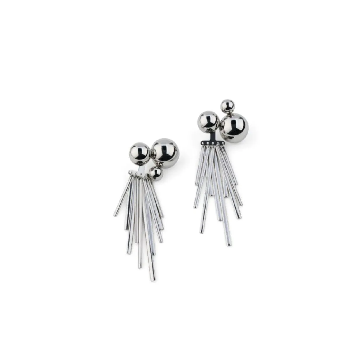 Grandiosa örhängen med ett kluster av halvkulor och ett avtagbart skimrande hänge. Bär från dag till natt, variera med att bära dem med eller utan hänget. Designad för hen som älskar att uttrycka sig genom sina accessoarer. Vår Solar värld är en flirt med 60-talet och den futuristiska design-vågen. Modern Scandicool design av tidlösa former. En reflekterande, skulptural smyckeskollektion med stor wow-faktor! Designen känns trots sitt voluminösa, tredimensionella uttryck nästan viktlös att bära.