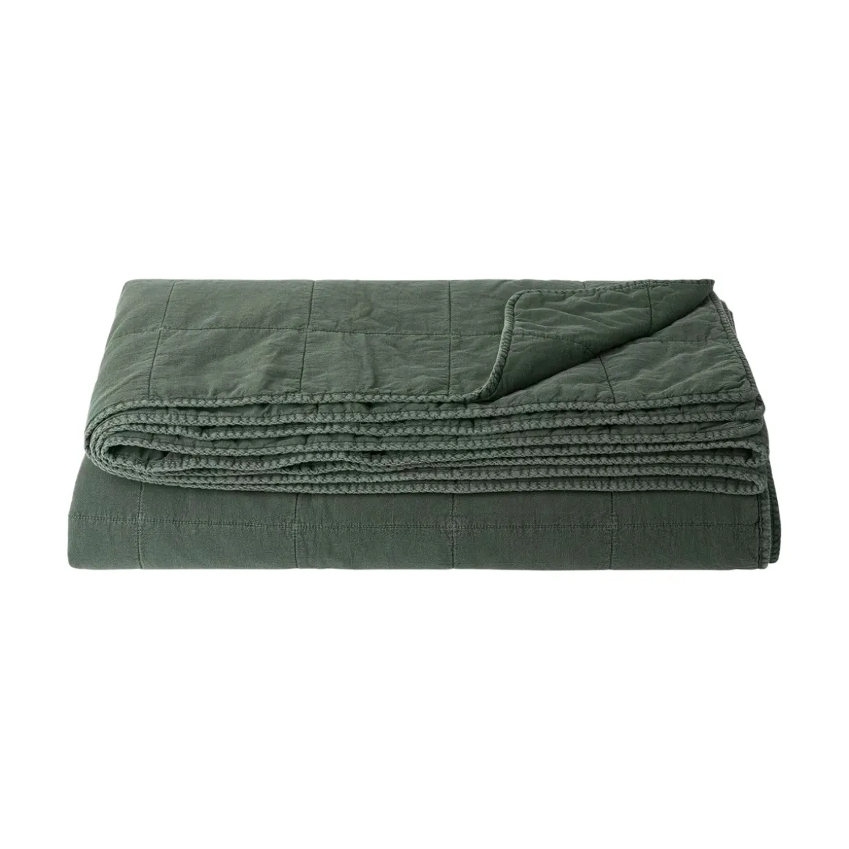 Stort, quiltat och vadderat överkast i grön bomull från VIDE. CELIAs quiltade rutor ger din bäddning mjuk, klassisk struktur och en ombonad känsla. Finns i flera färger.