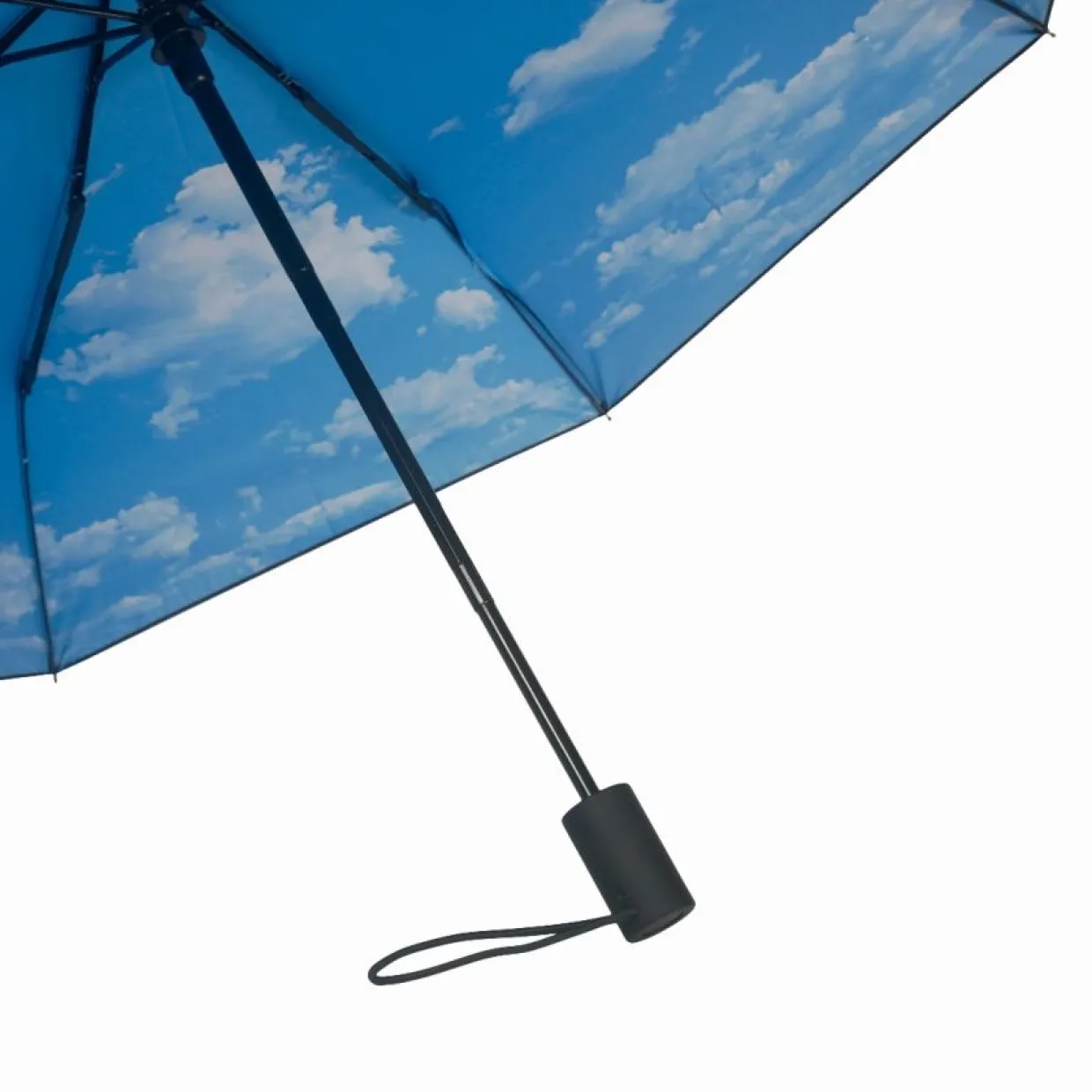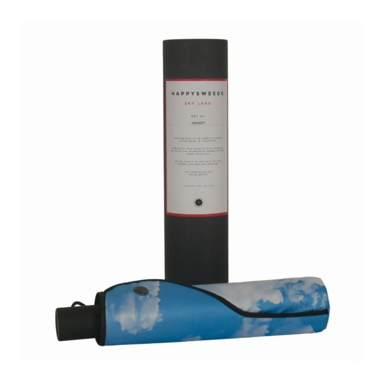Kompaktparaply från stockholmsbaserade HappySweeds. Paraplyet har ett greppvänligt gummihandtag och supersmart automatisk upp- och ihopfällning med ett enkelt knapptryck. Gjord i vindtätt material med svart ovansida och olika mönster på undersidan. Praktiskt fodral medföljer och paraplyet levereras i en svart tub.