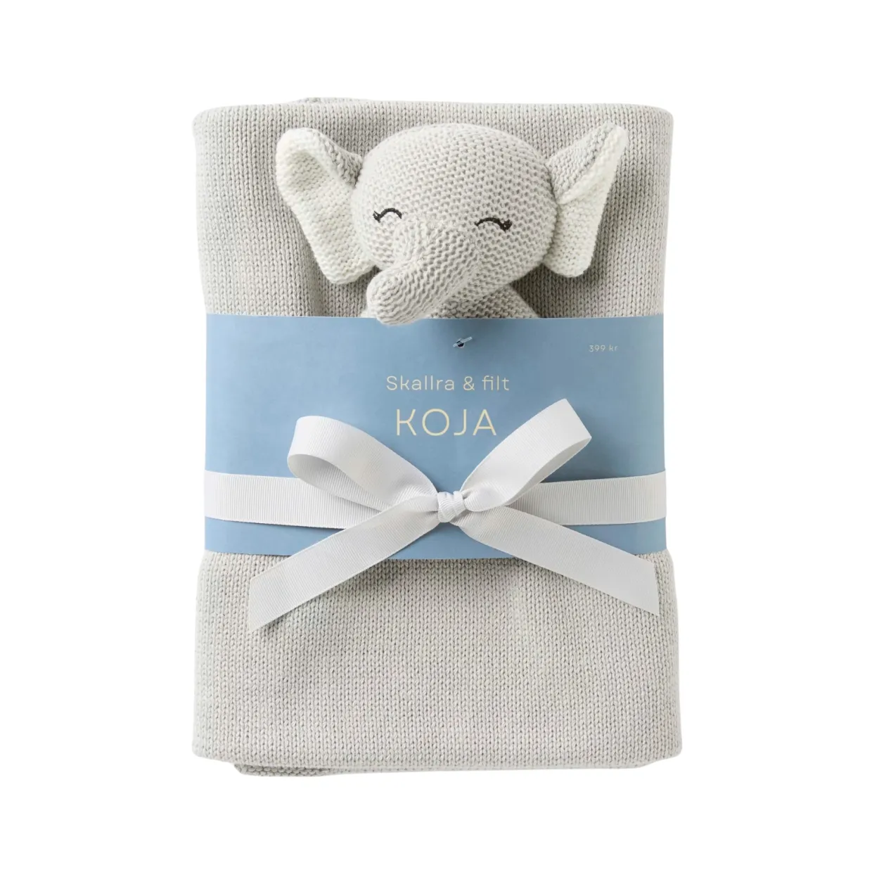 Sött presentkit till de allra minsta, perfekt som doppresent eller som gåva till den nyfödda. MAJA gåvokit består av en skallra i milda färger, samt en färgmatchad filt. Skallran har en mjuk stickad yta i 100% bomullsgarn och broderade detaljer i ansiktet. Den finstickade filten har en ribbad kant runt om och blir skön att ha i sängen eller vagnen. Välj mellan följande djur: kanin, räv eller elefant. Perfekt present till babyshowern, dop eller namngivning.