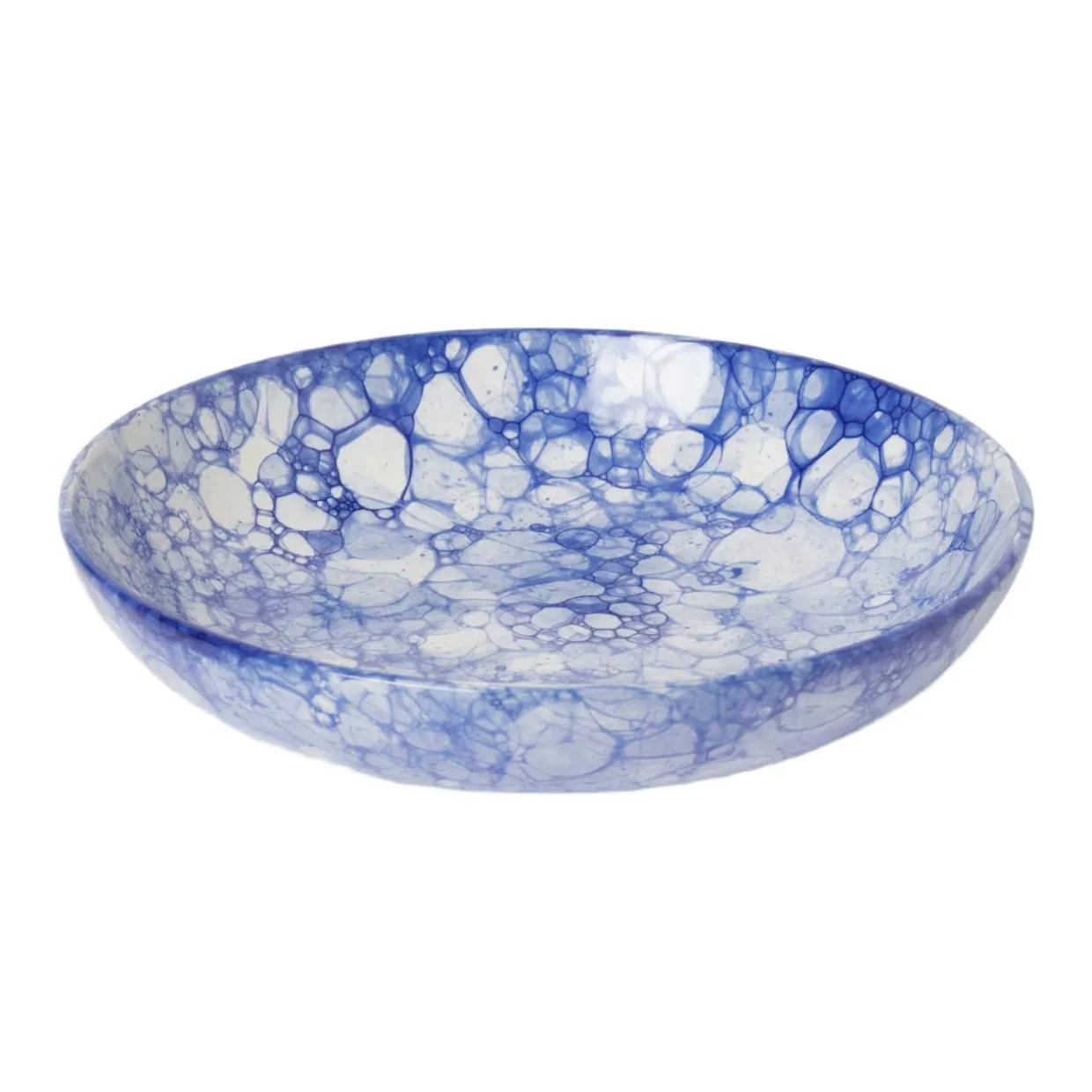 Motivet är skapat med hjälp av munblåsta bubblor, vilket gör varje skål unik.