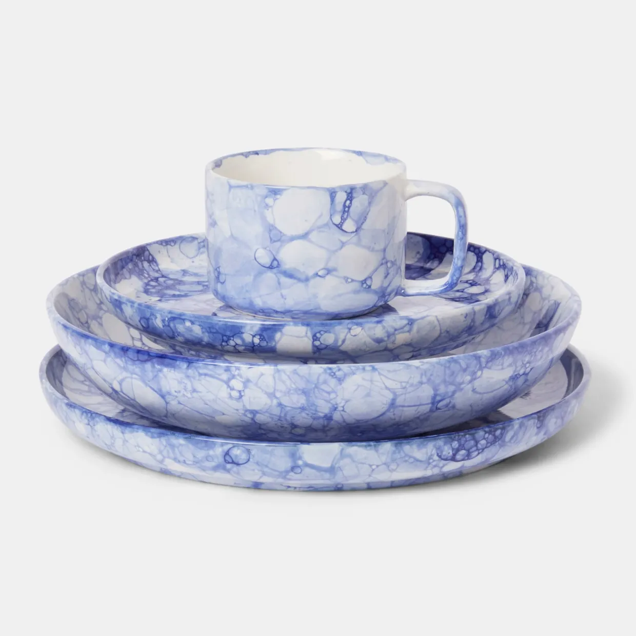 I stengodsserien BUBBLE finns matchande tallrikar, assietter och muggar – alla med samma blåa härliga mönster.