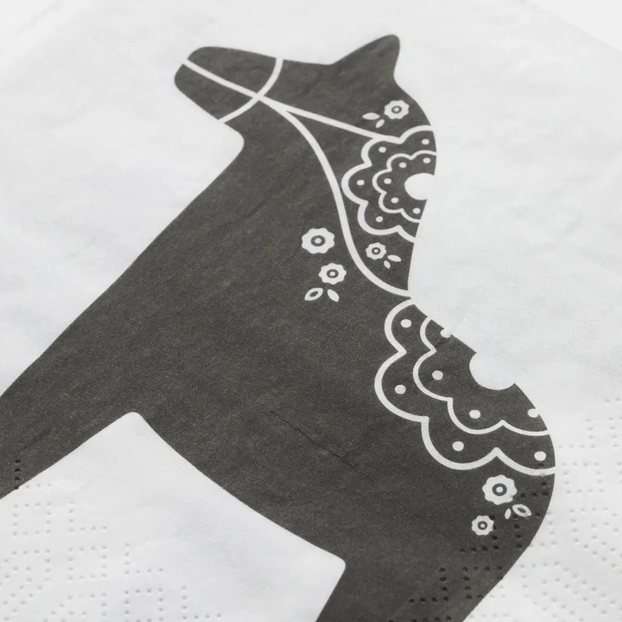 Tjugo stycken mönstrade pappersservetter med dalahästar.