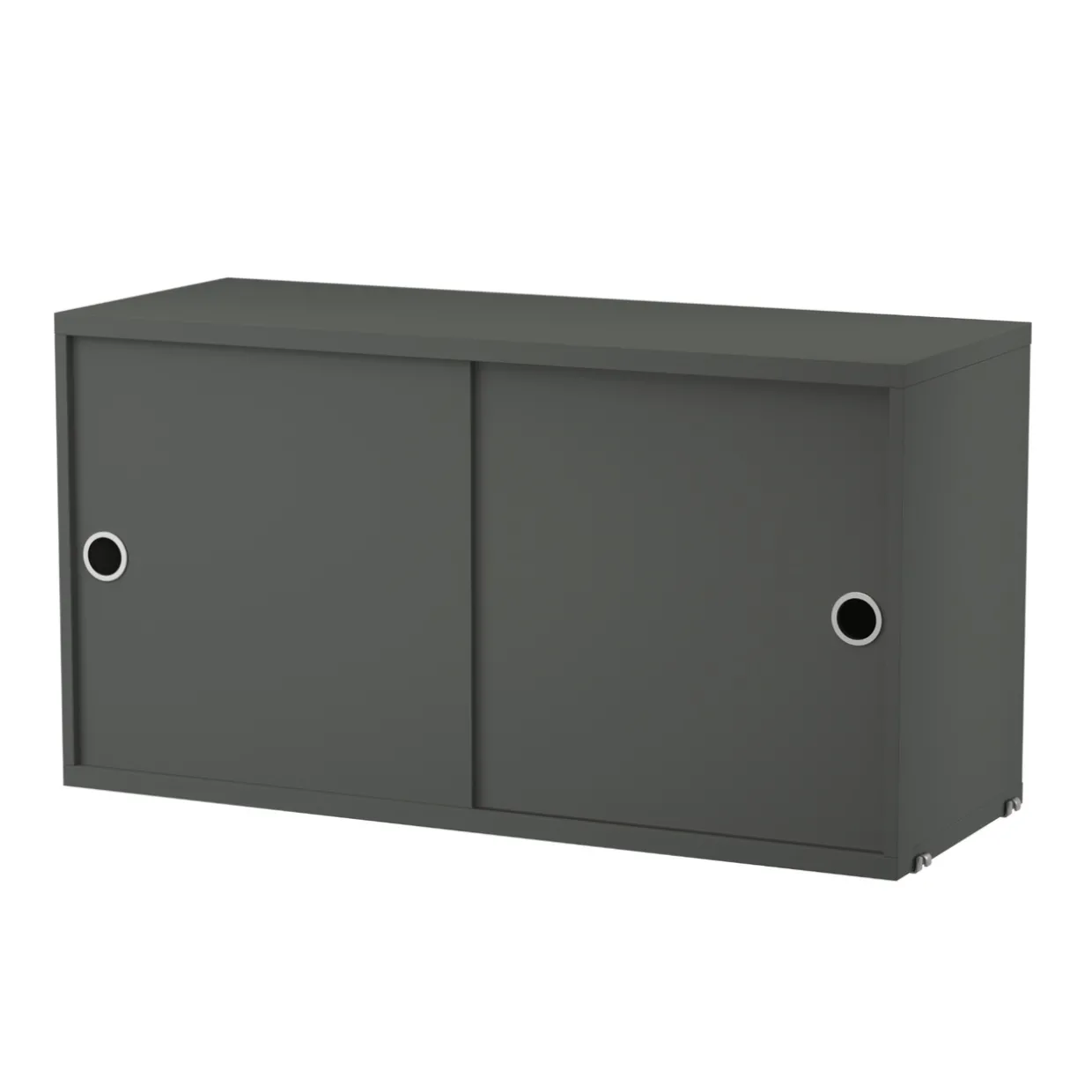 Skåpet med skjutdörrar kan enkelt integreras i String®-hyllsystemet i några få steg. Skåpet finns i en bredd, 78 cm, och två djup, 20 och 30 cm.