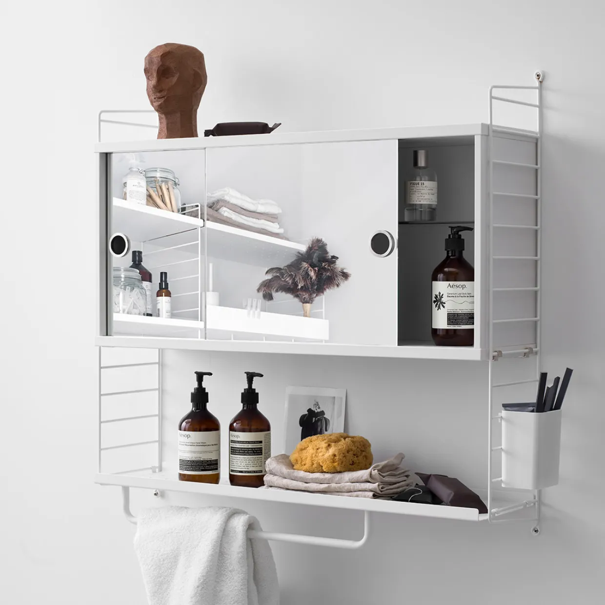 String vitrinskåp med skjutdörrar i spegelglas.